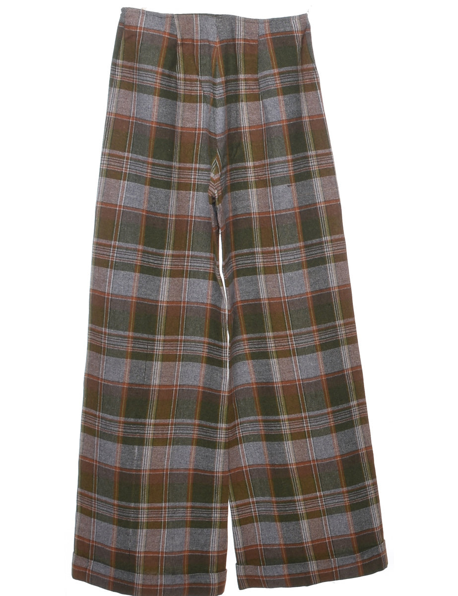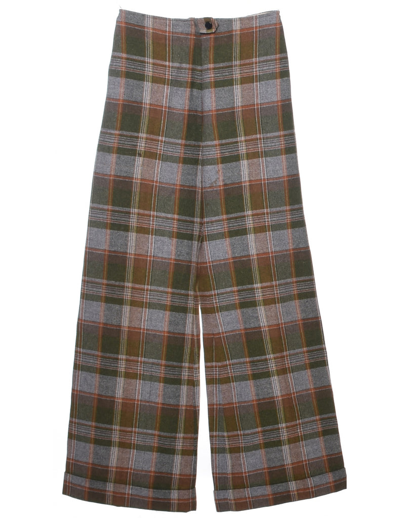 Flared leg trousers with checked pattern. Comes in multi-colour with a cuffed hem and a high waist.