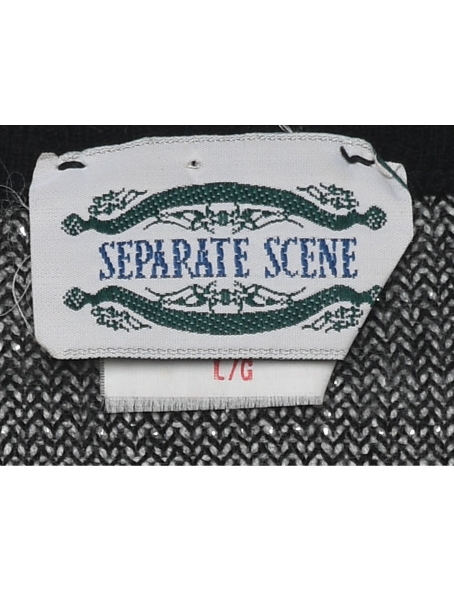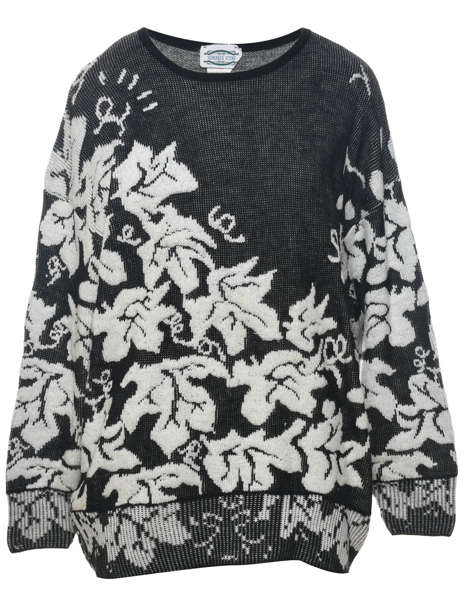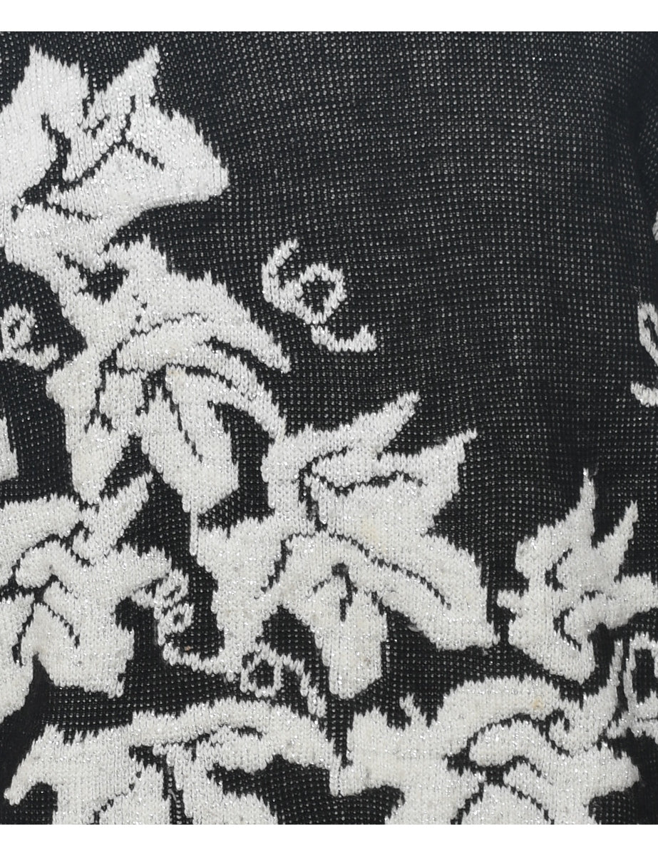 Floral knit jumper with lurex thread pattern. Comes in black & white with a drop shoulder.