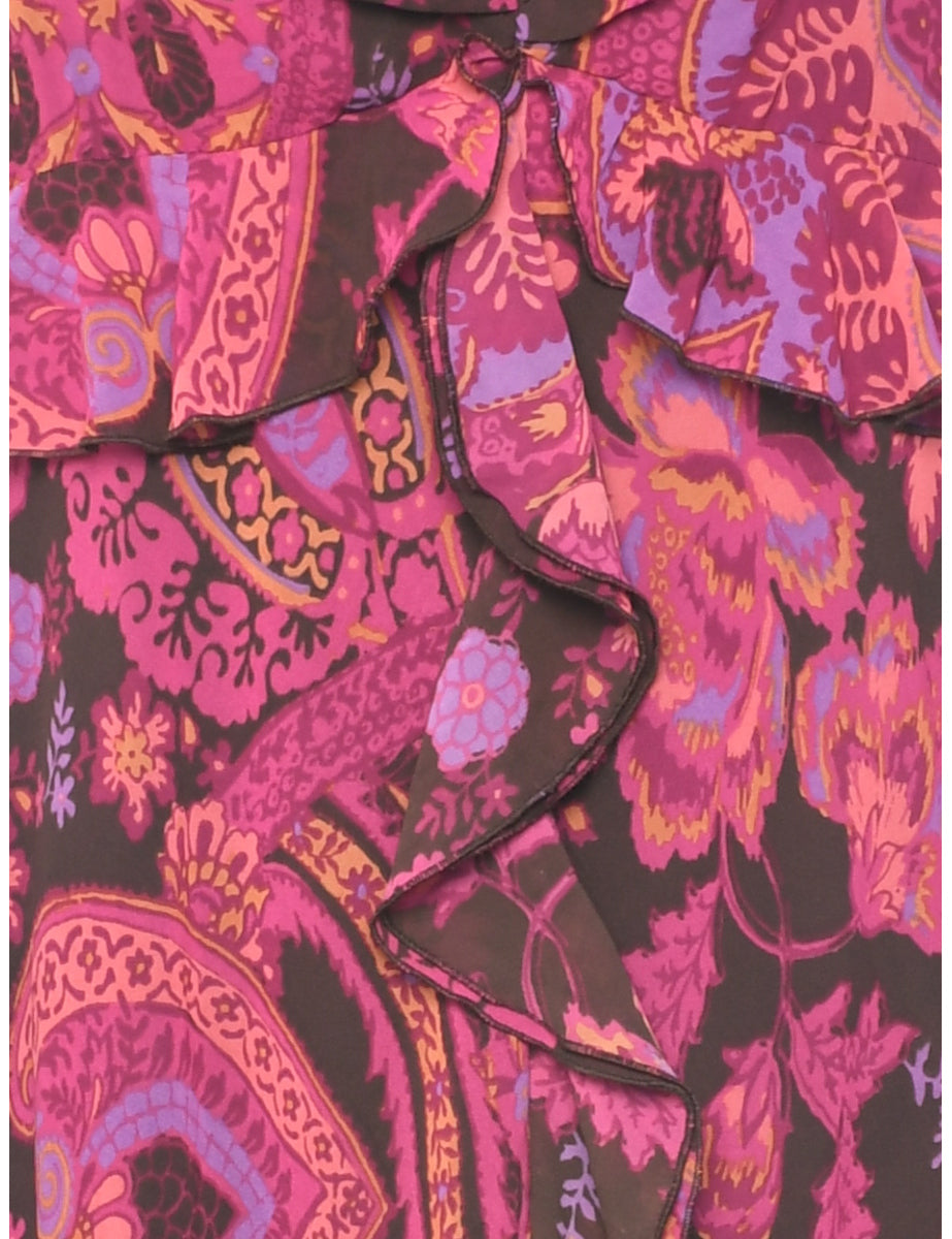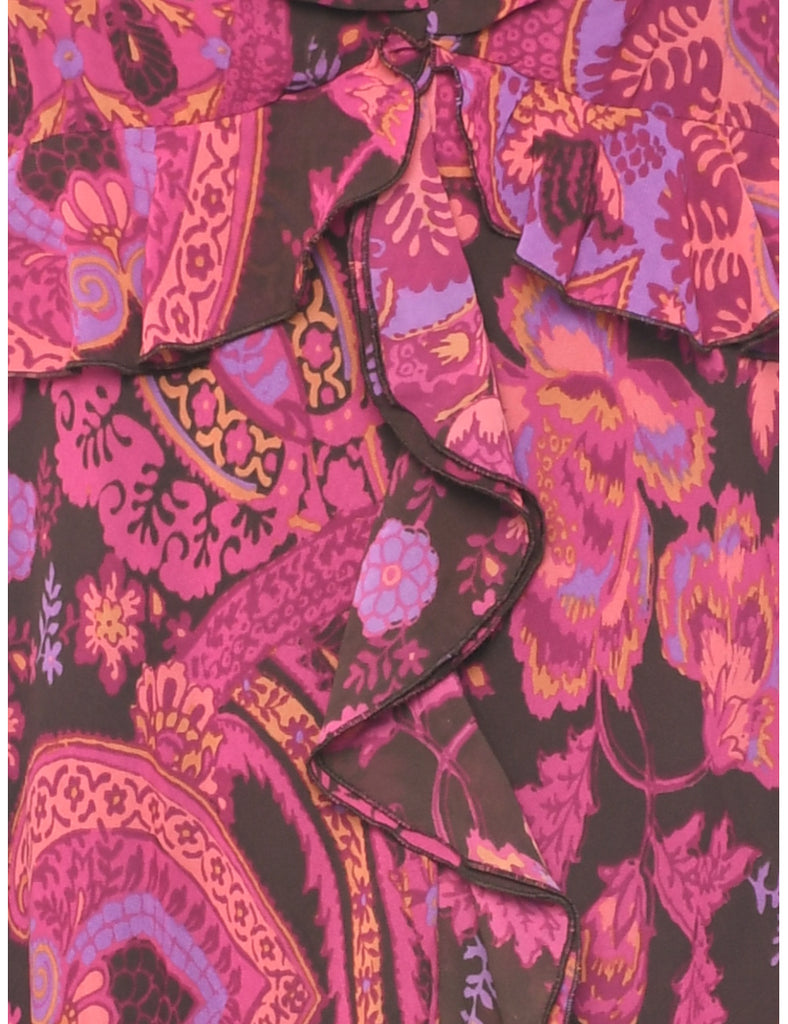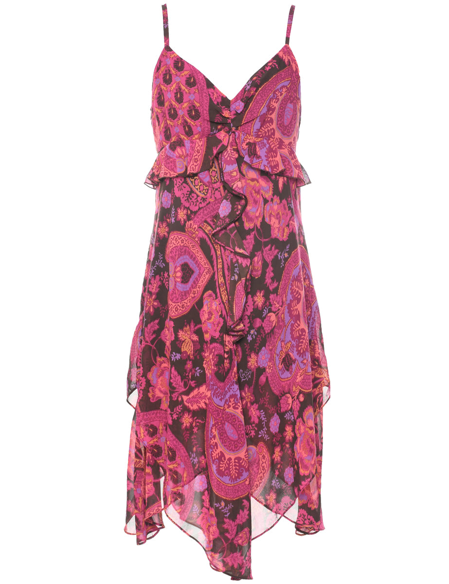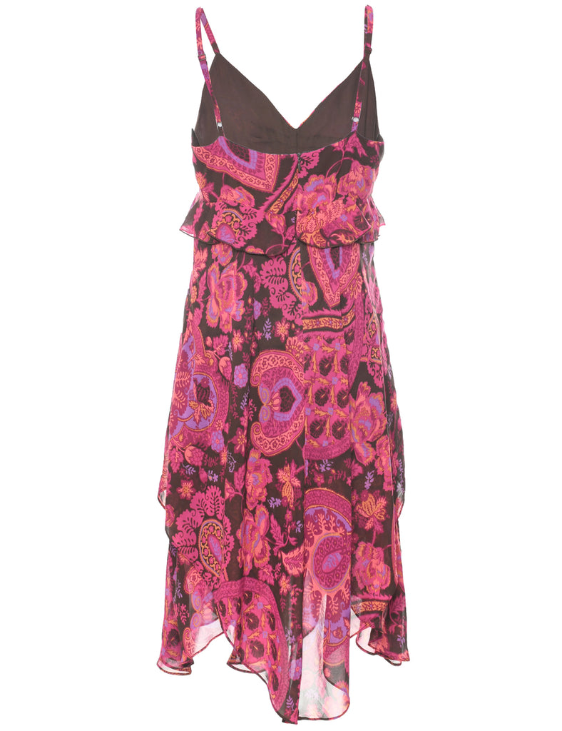 Floral print dress in multi-colour with an asymmetric hem and v neck.