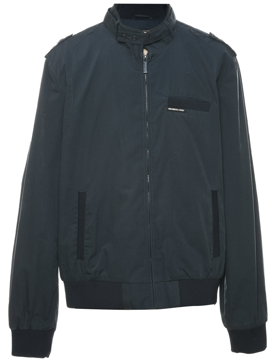 Zip front harrington jacket. Members Only in black with epaulettes and multiple pockets.