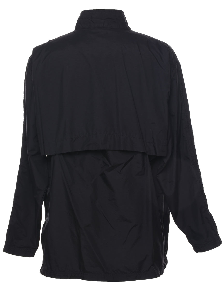 Zip front nylon jacket. Nike in black with mesh lining and multiple pockets.