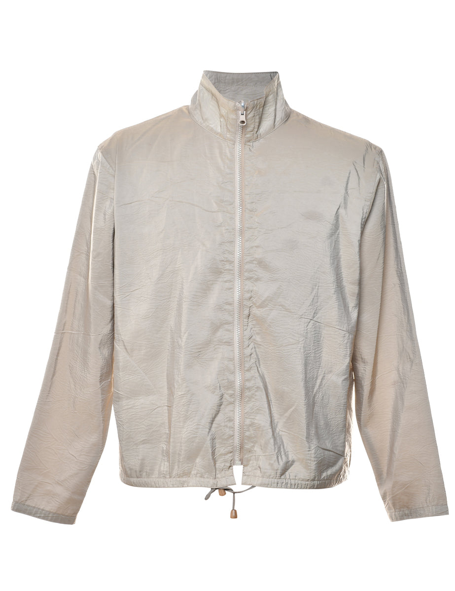 Zip front jacket in olive green with full lining.