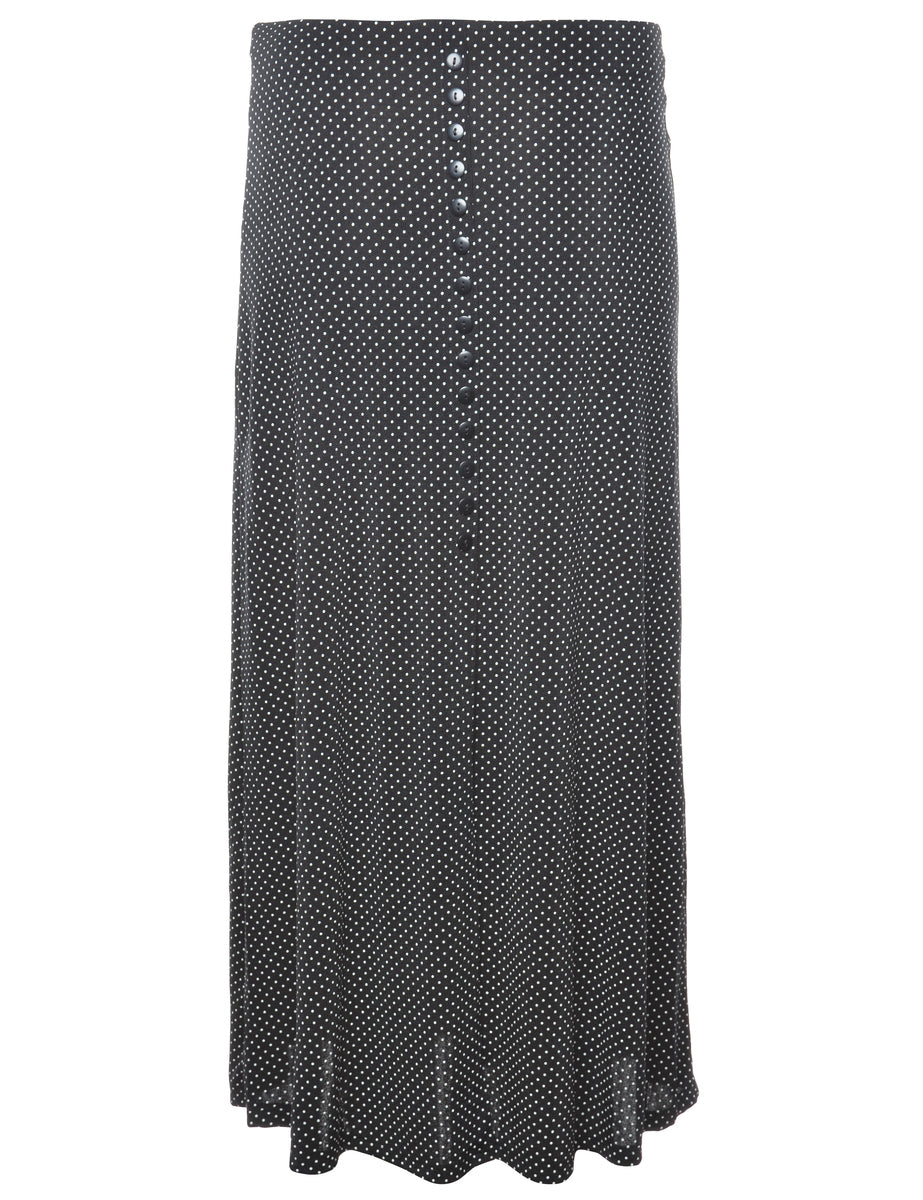 Polka dot skirt in black with decorative buttons and an elasticized waist.