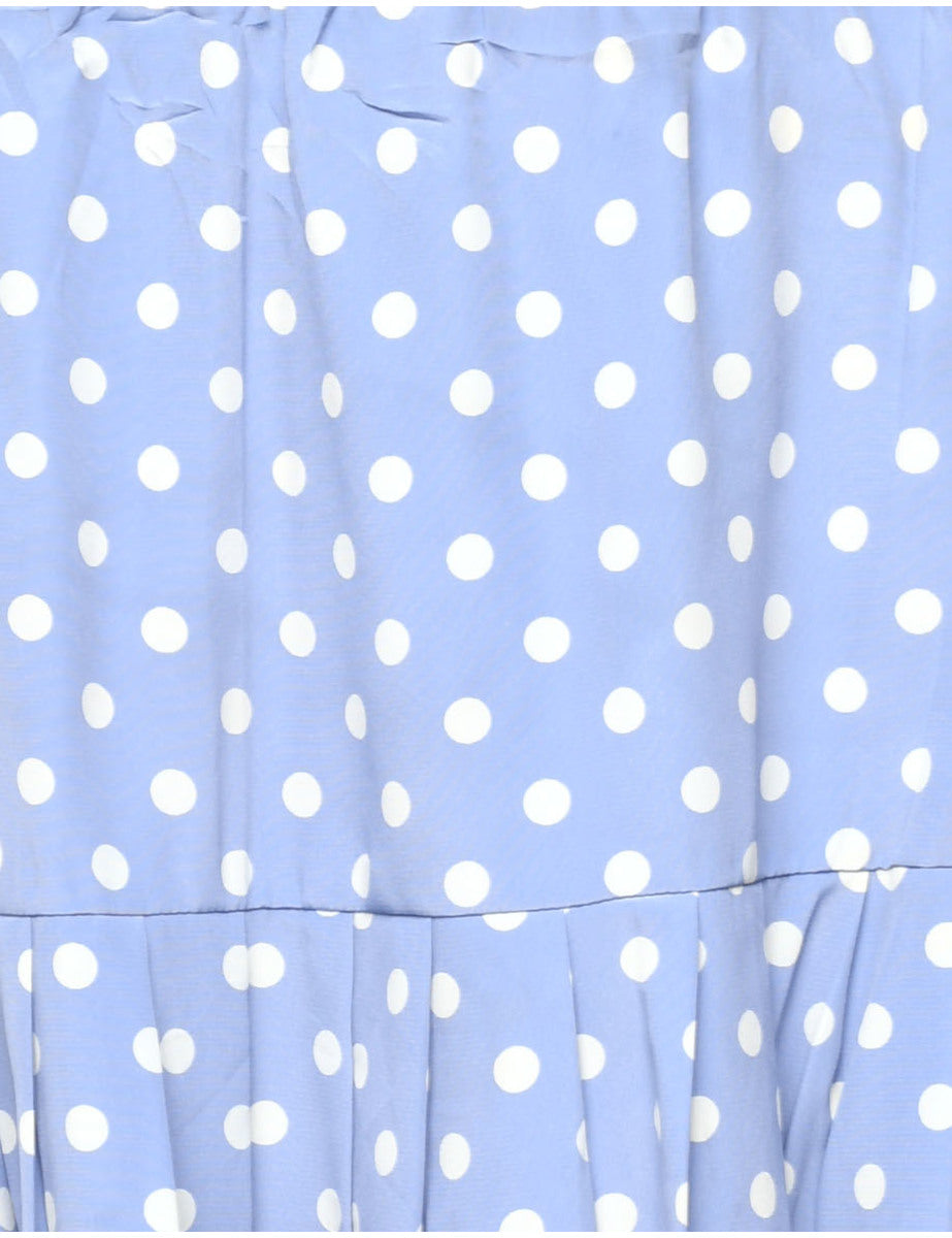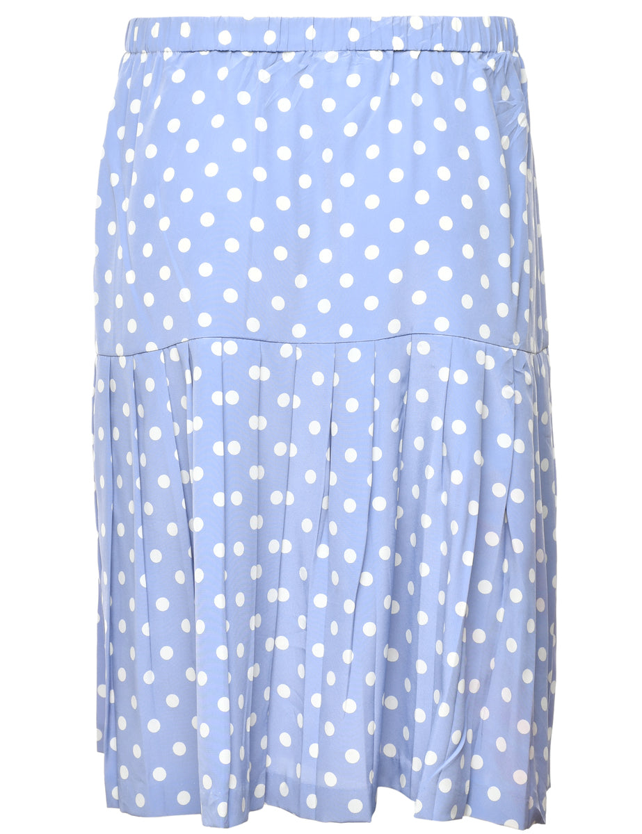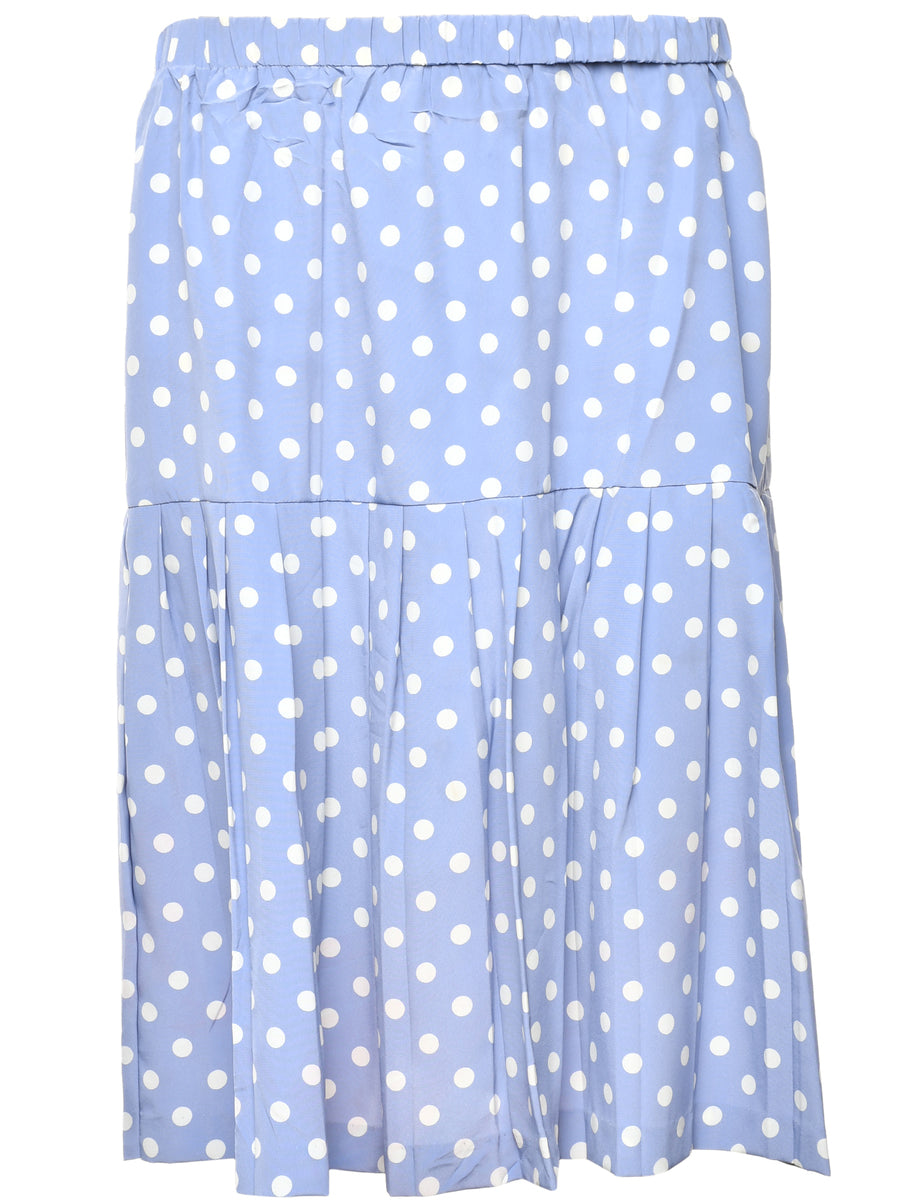 Polka dots blue pleated skirt with an elasticized waist.