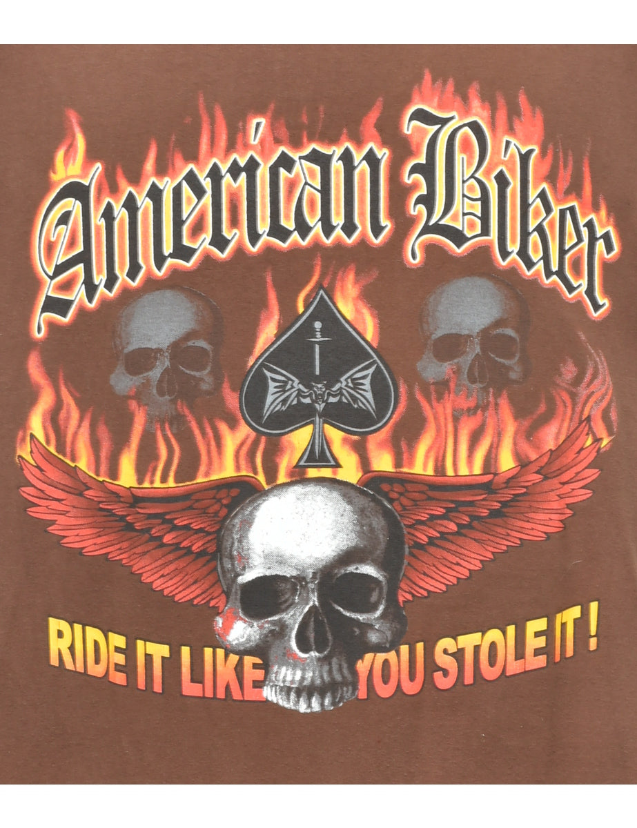American Biker printed t-shirt. Comes in brown.