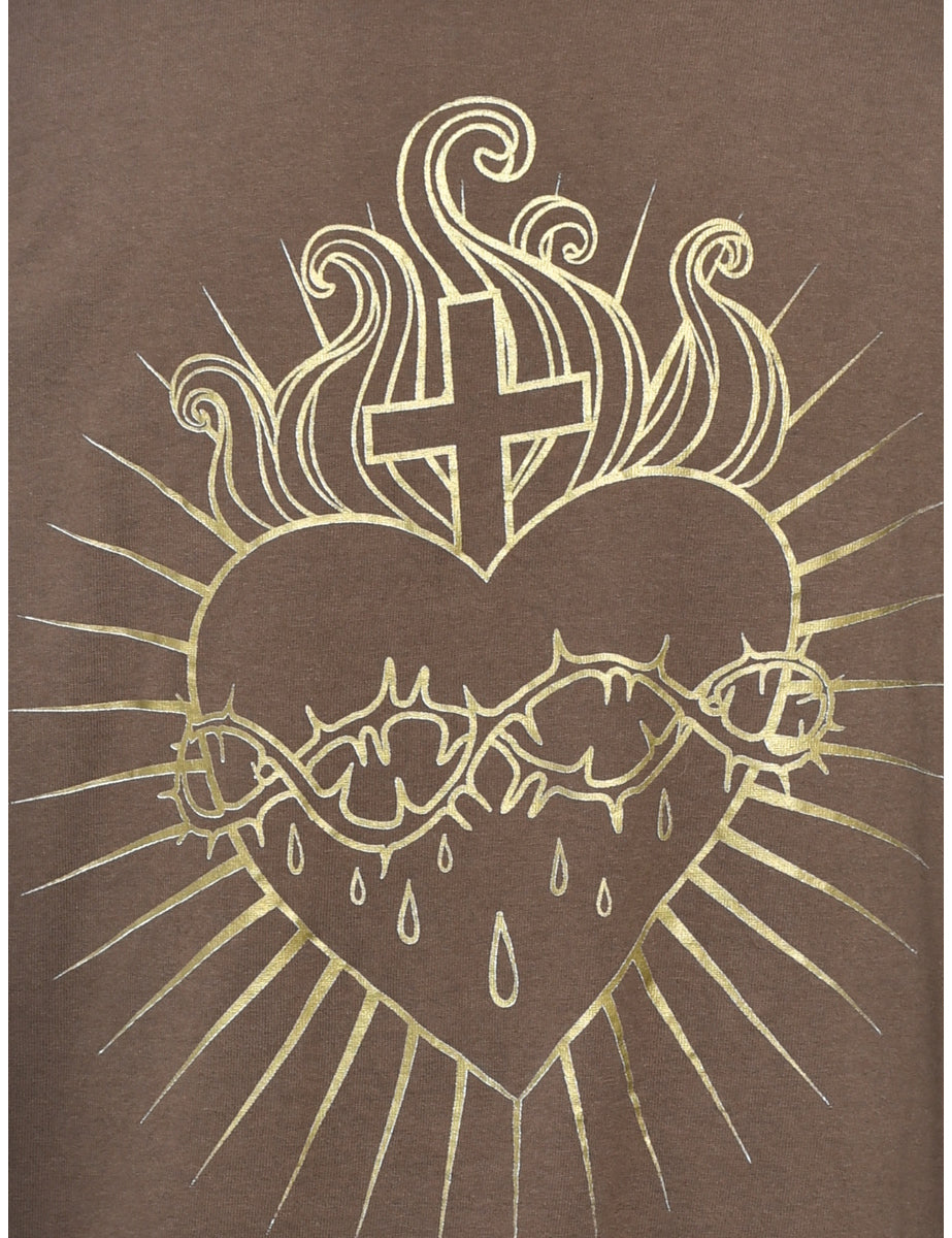 Vintage Y2K Brown Printed T-shirt - XL