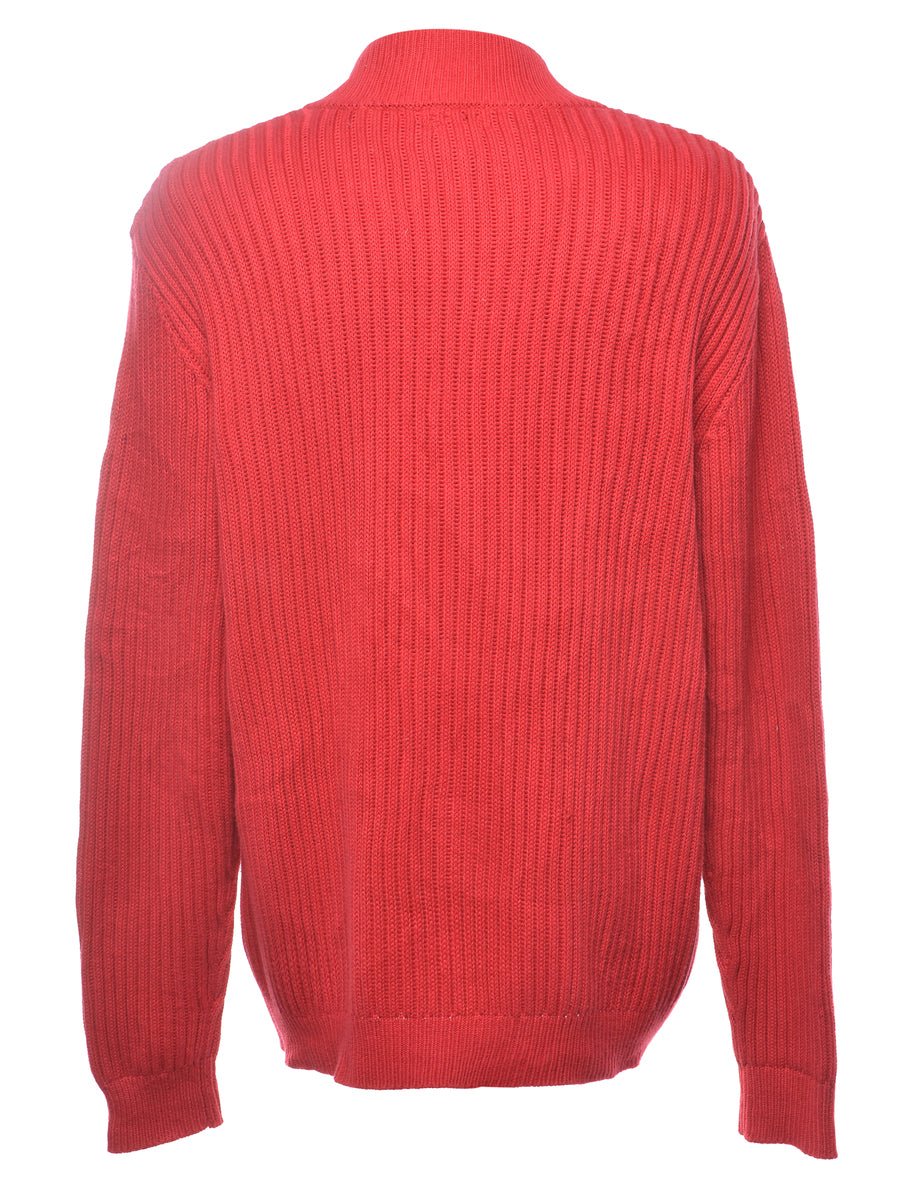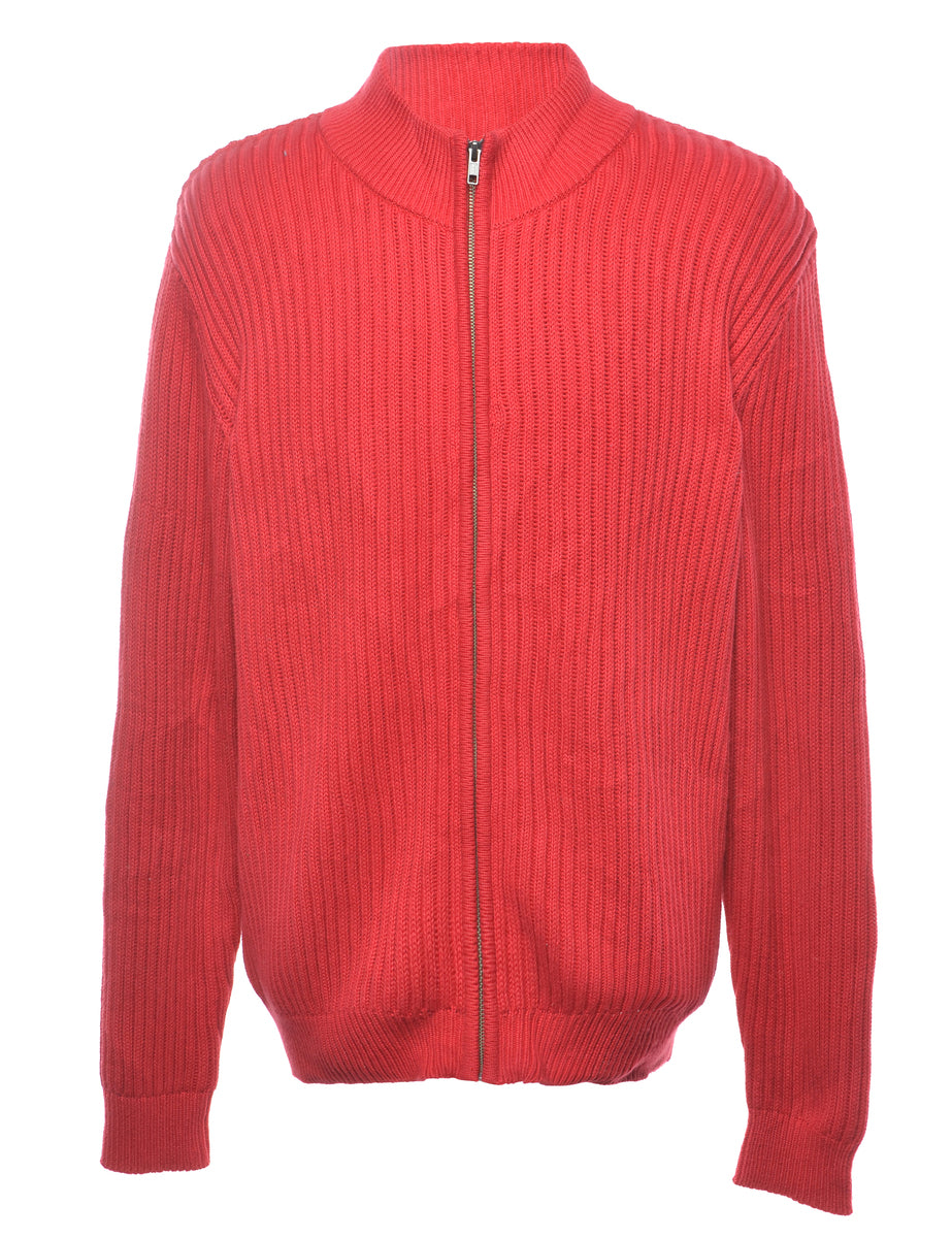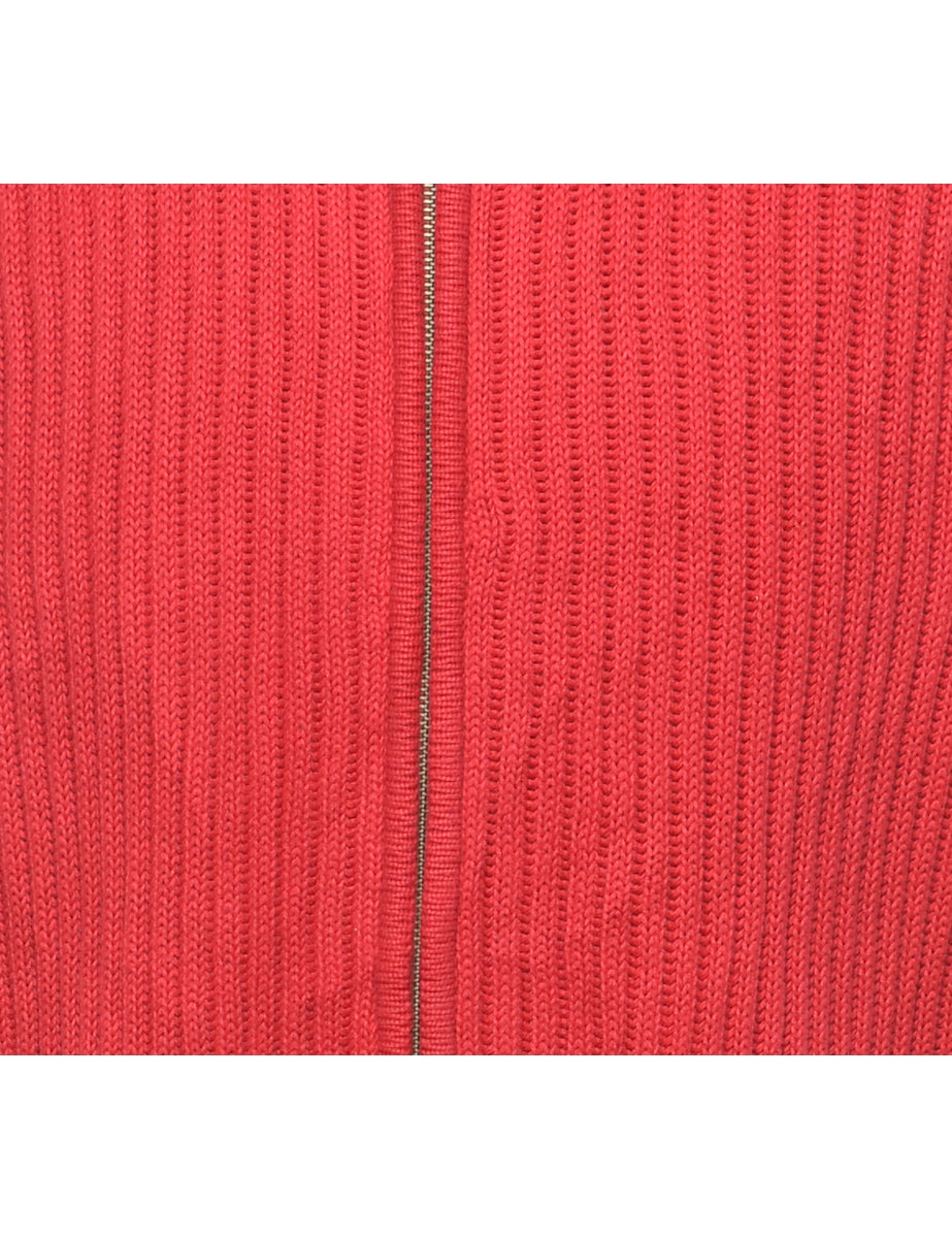 L. L. Bean zip front cardigan. Comes in red with a high neck.