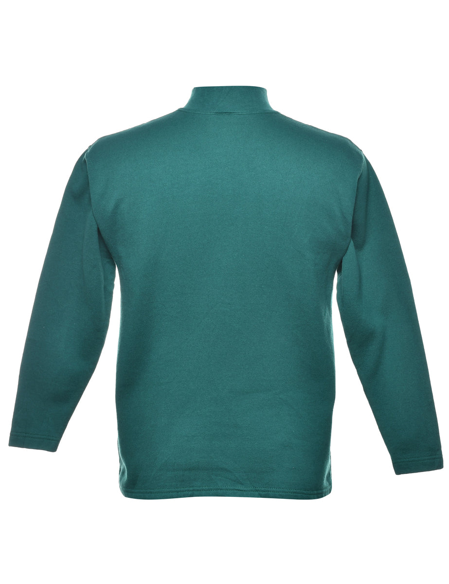 Animal design christmas sweatshirt comes in dark green. The size label mentions M but based on the actual measurements we consider it a size S.