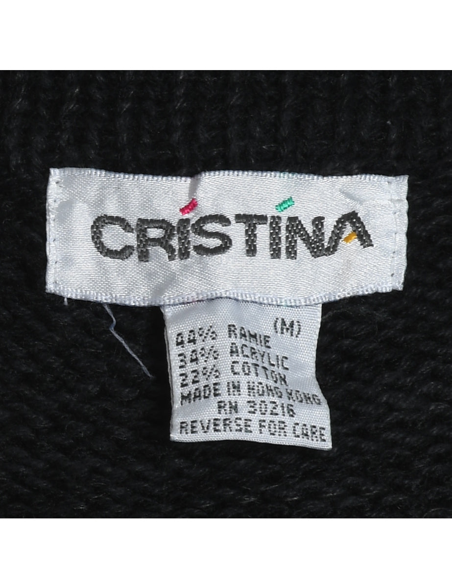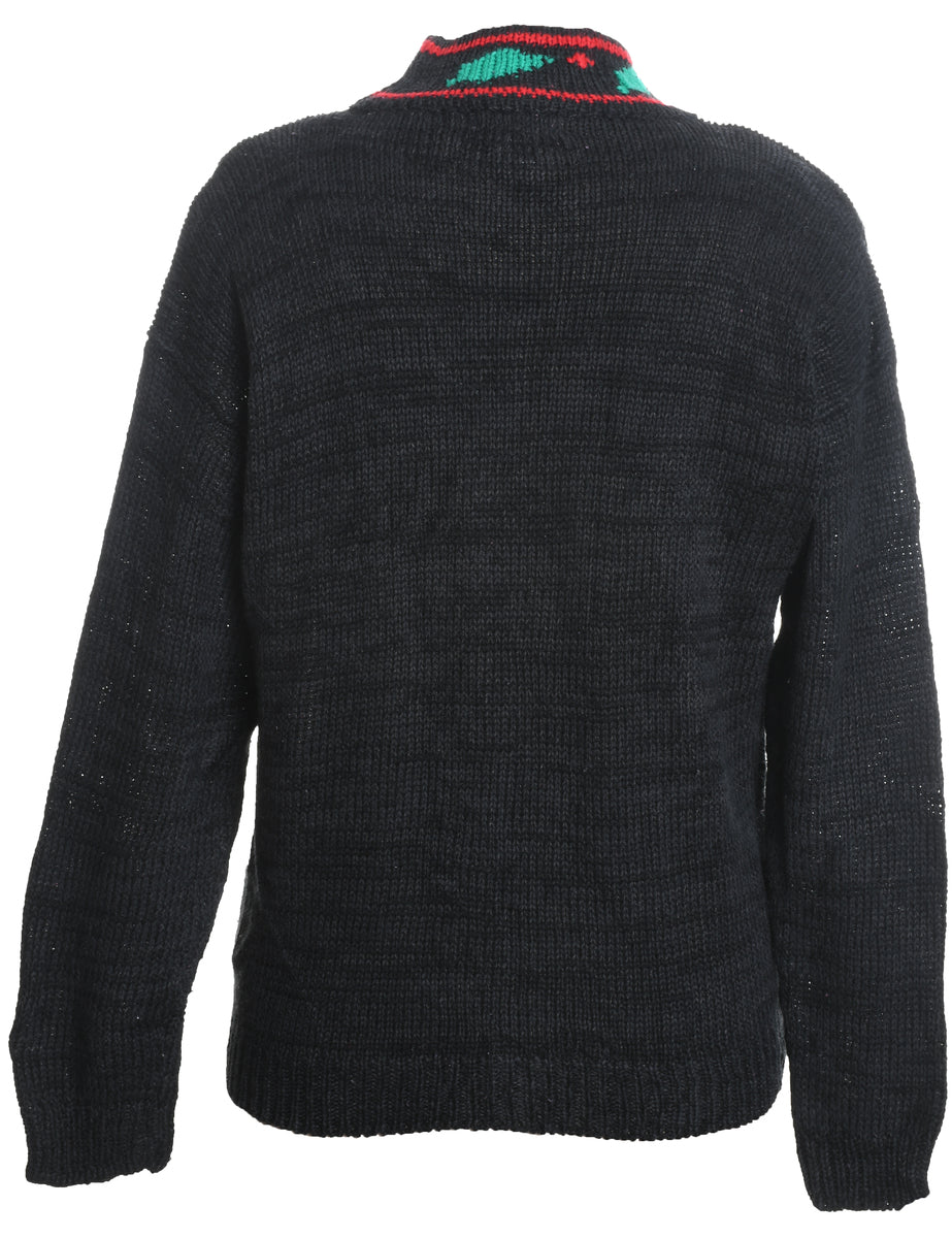 Teddy bear print christmas jumper comes in black with removable shoulder pads.