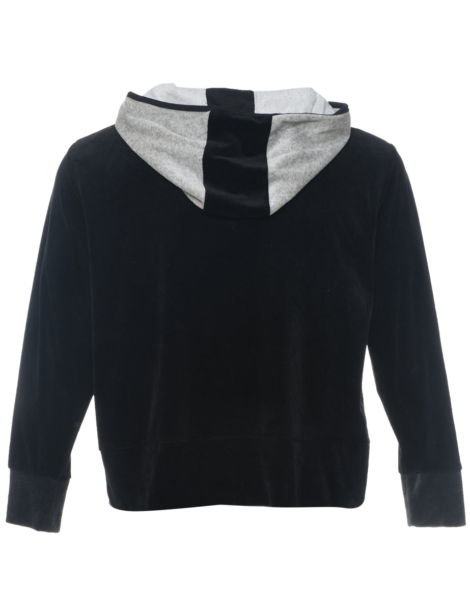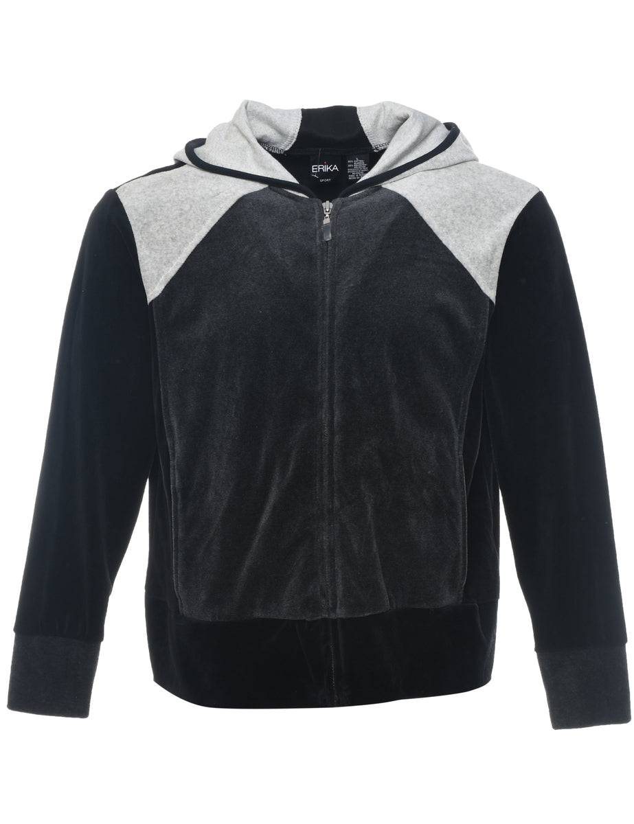 Erika Velvet Hooded Black & Grey Contrast Track Top - L