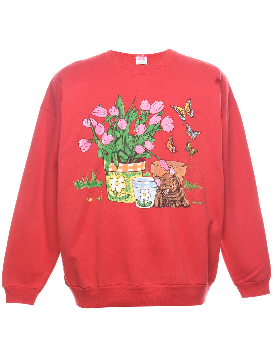 Floral printed 1990s sweatshirt comes in red with a drop shoulder.