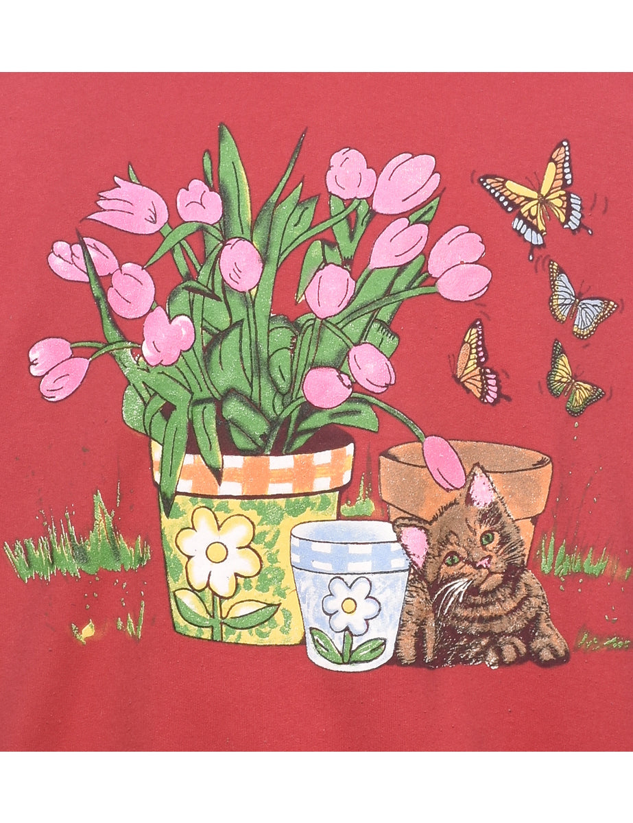 Vintage Floral Printed 1990s Sweatshirt - XL