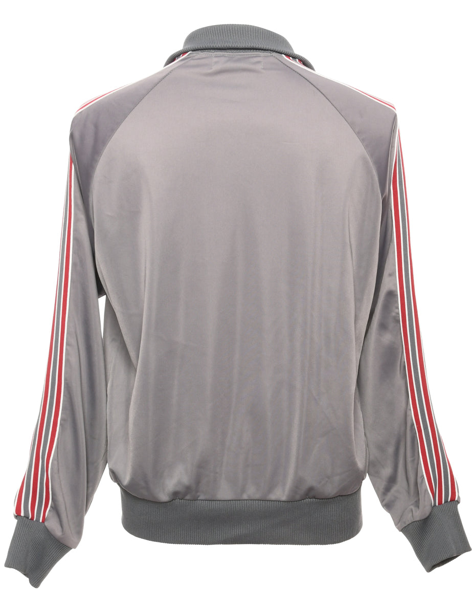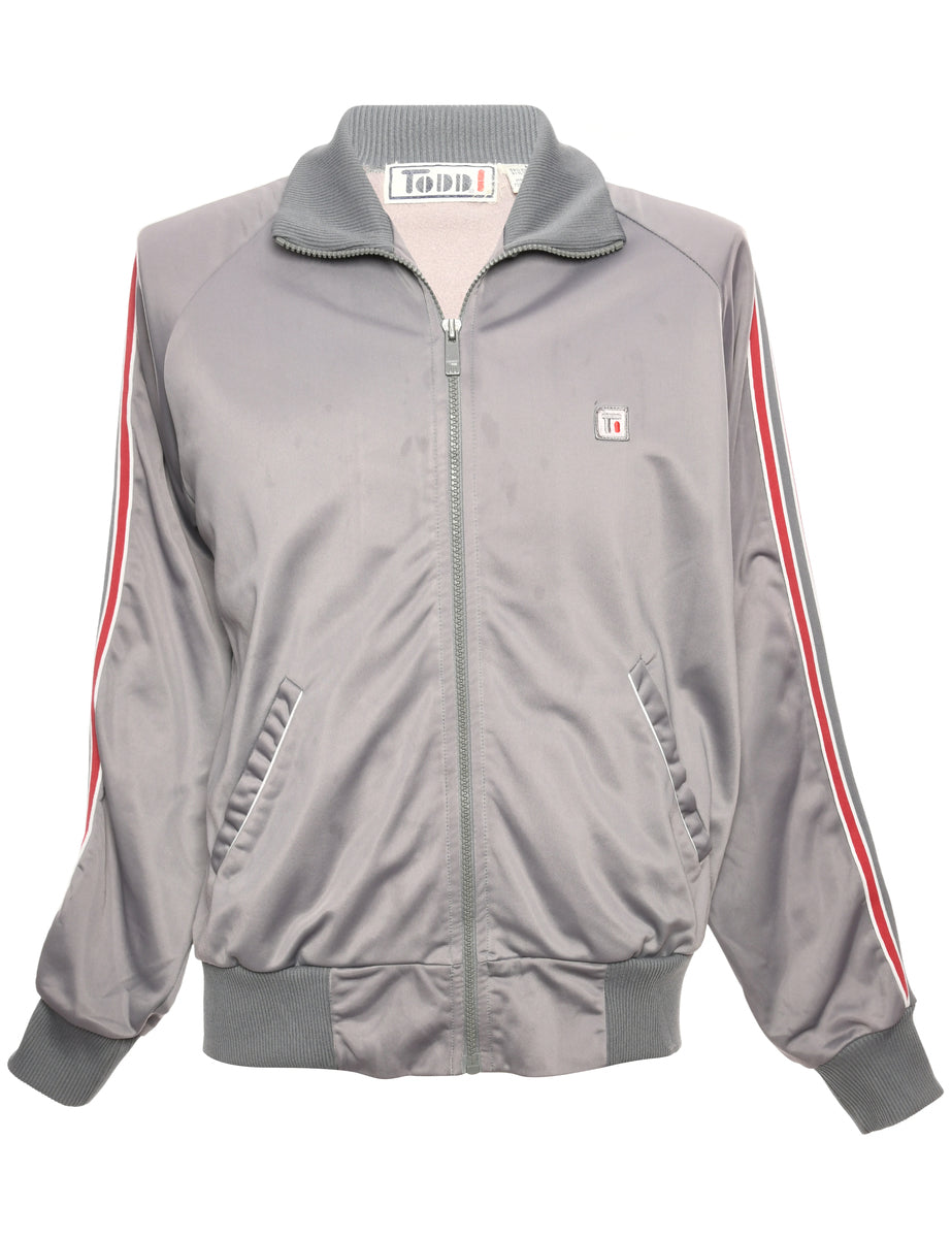 Grey track top with a pocket. Stain on front but otherwise in good condition.
