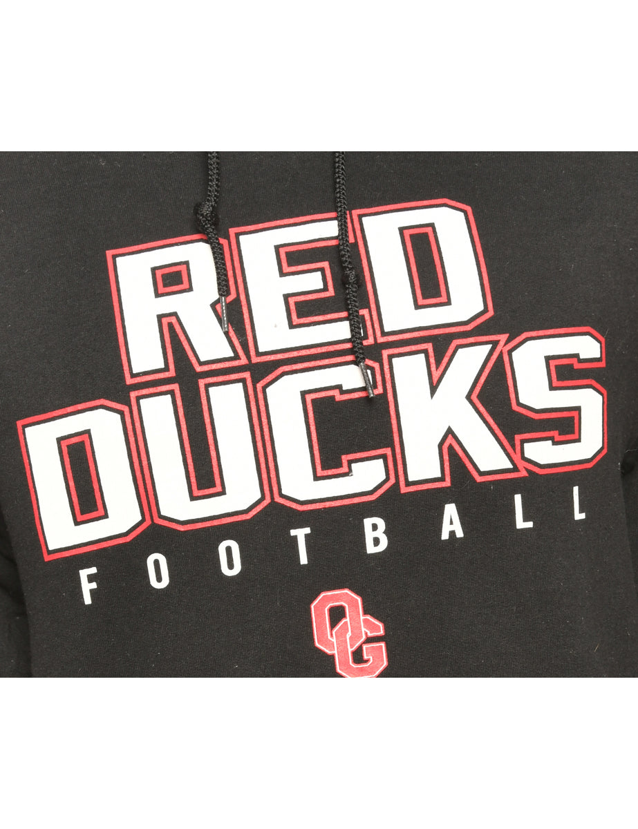 Red ducks football hooded sports sweatshirt in black with a pocket.