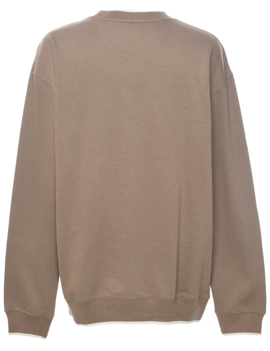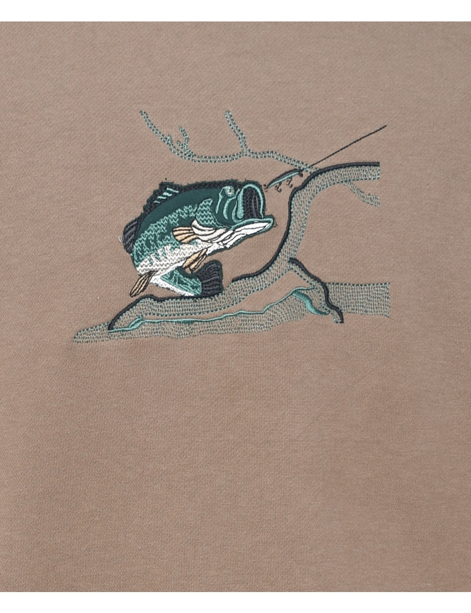 Whale embroidered sweatshirt comes in light brown with a drop shoulder.