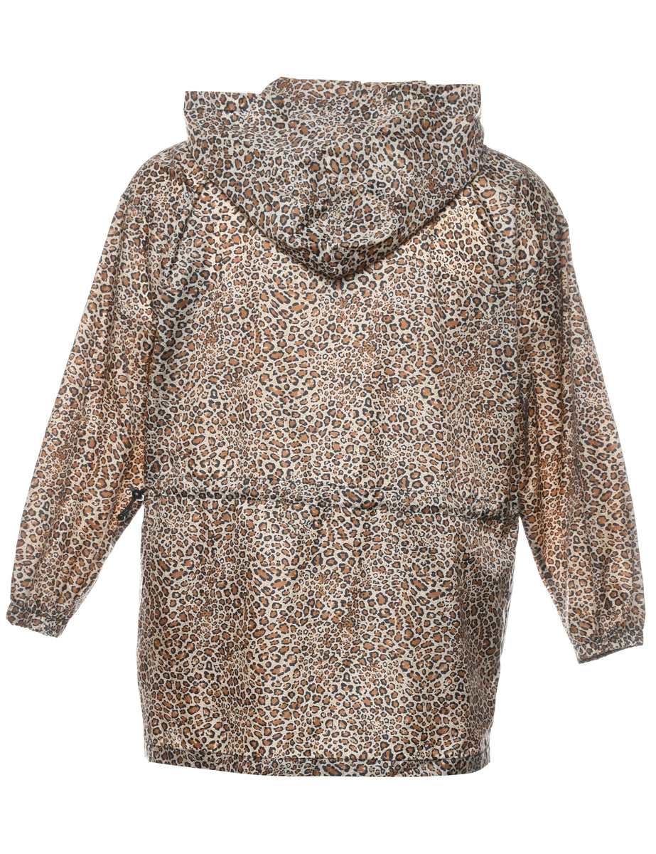 Vintage Leopard Print Black & Brown Hooded Nylon Jacket - L