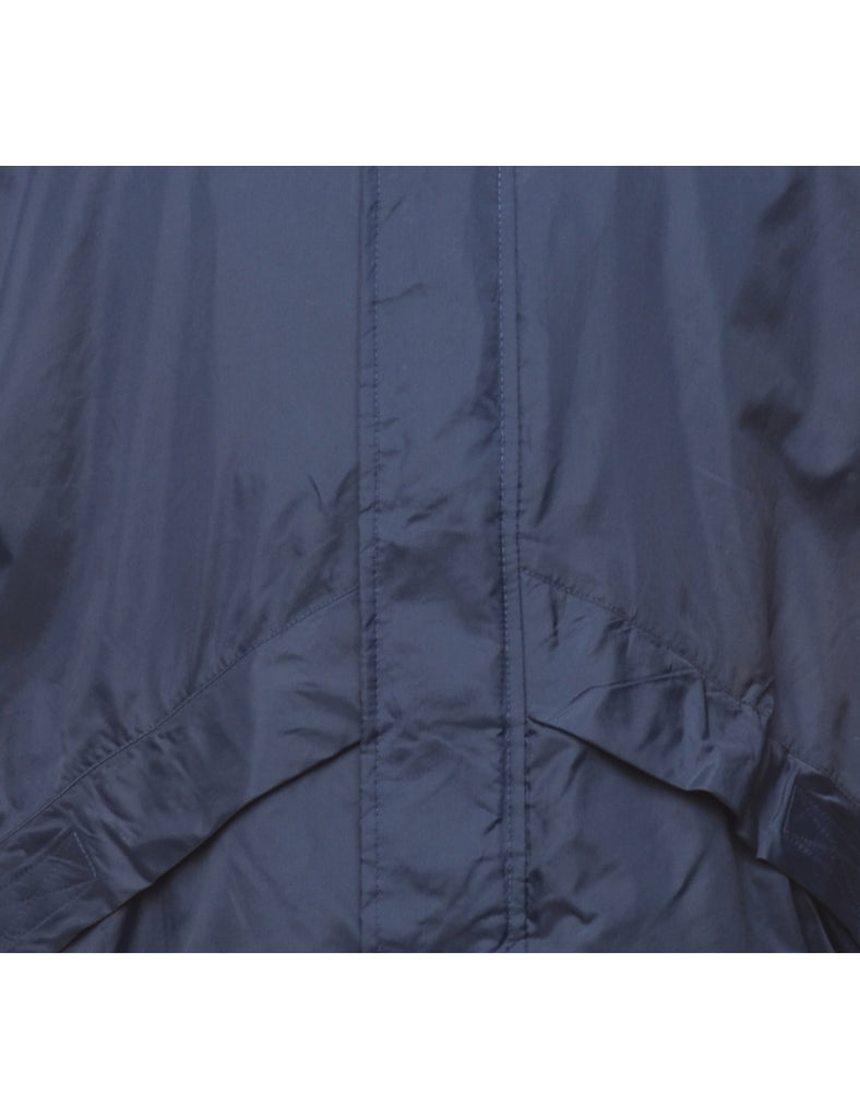 Zip front nylon jacket in navy with mesh lining and raglan sleeves.