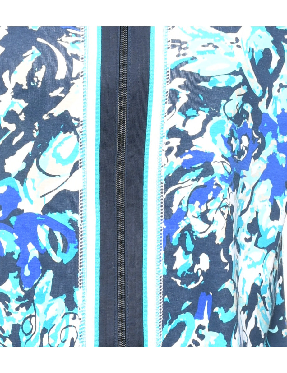 Zip-front blue classic patterned jacket complete with a drawstring neck.