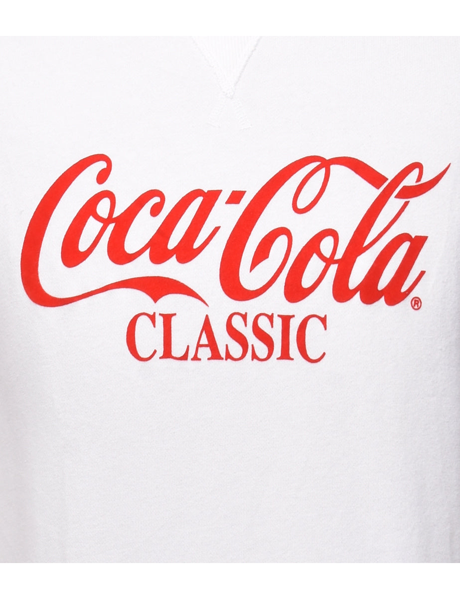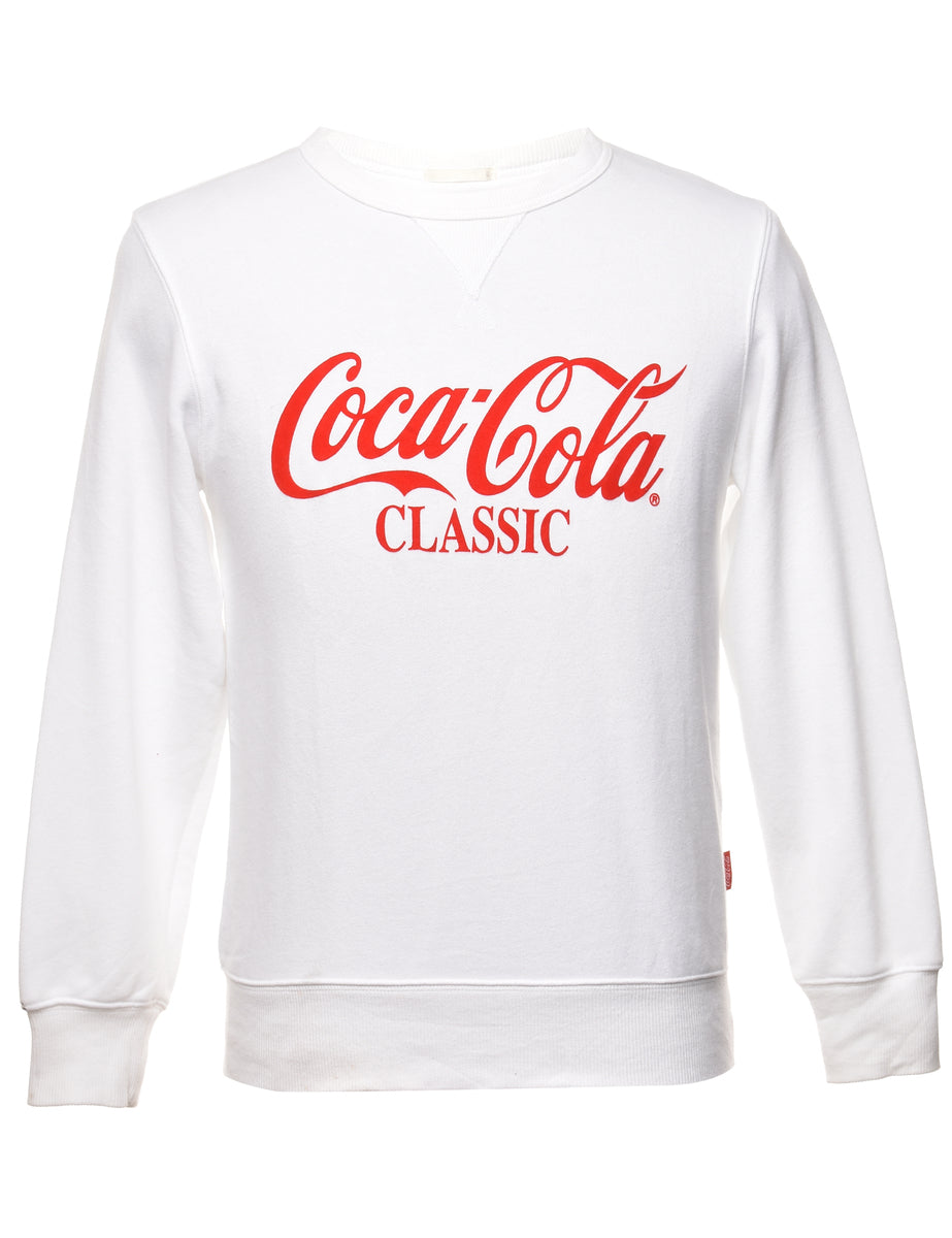 Coca Cola printed sweatshirt in white with ribbed cuffs and waistband.