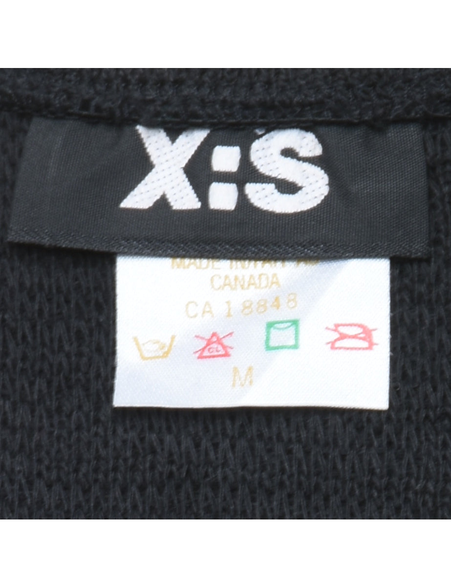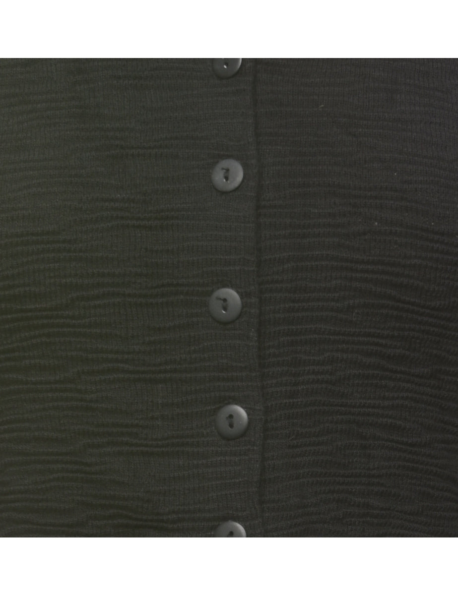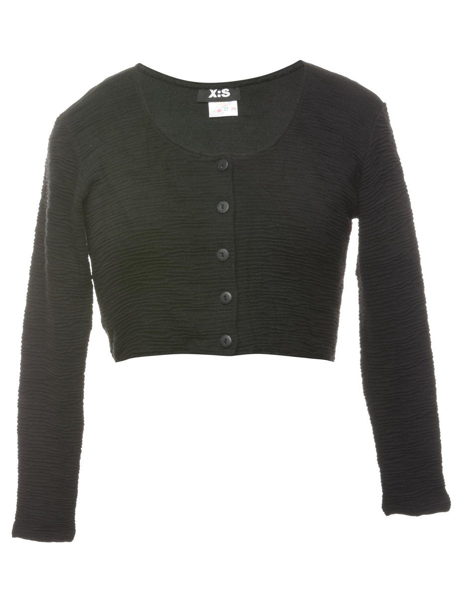 Cropped black cardigan with a round neck.The size label mentions M but based on the actual measurements we consider it a size S.