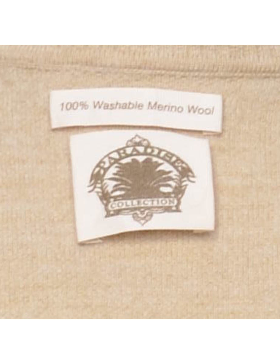 Long sleeved jumper. Comes in light brown with a v-neck.