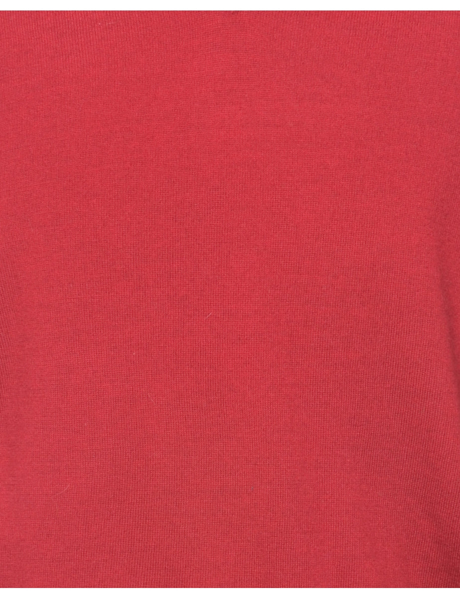 Long sleeved jumper in red with a v-neck.