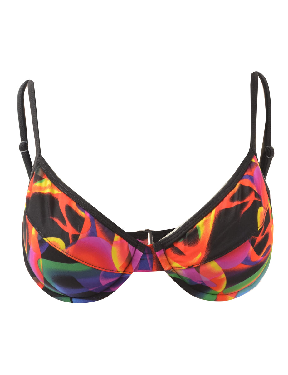 Abstract design boned bikini top complete with a built-in bra. Size 10.