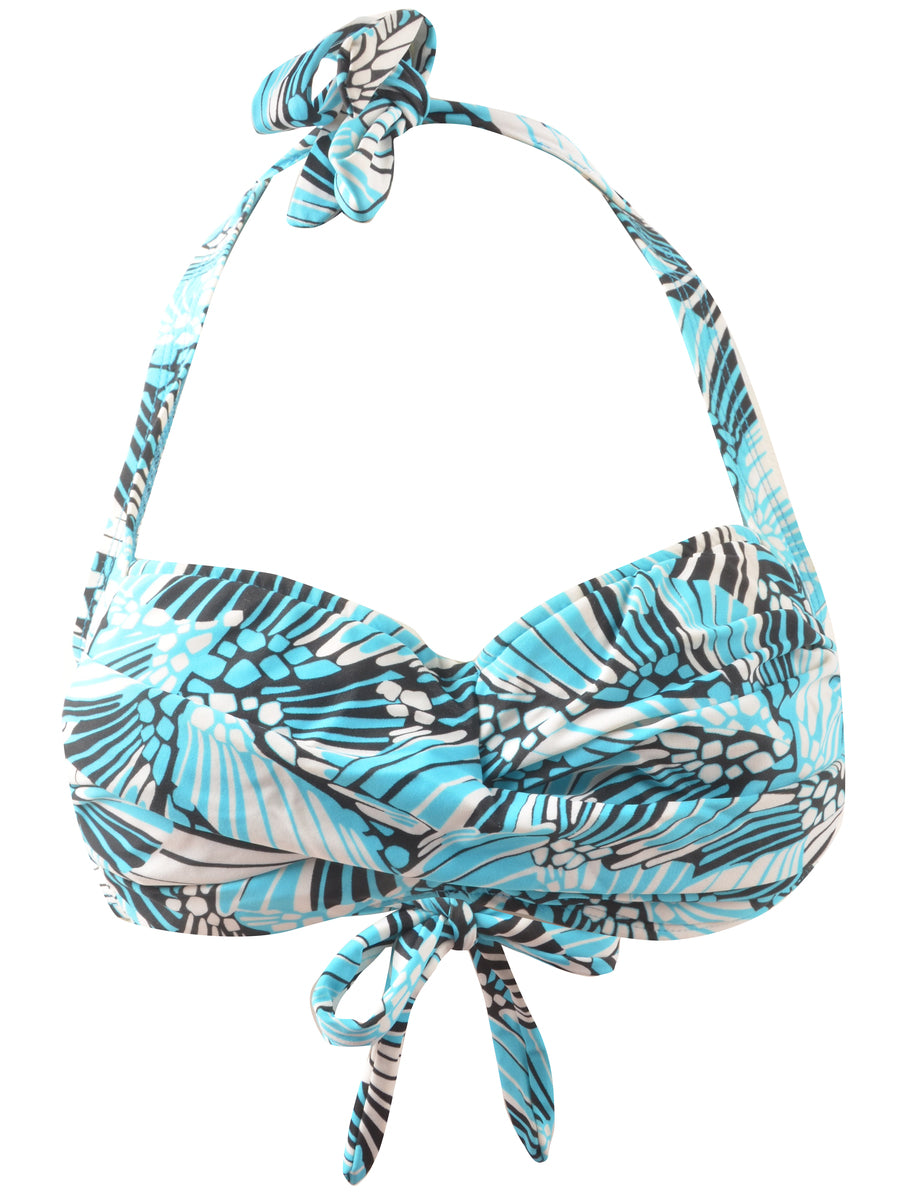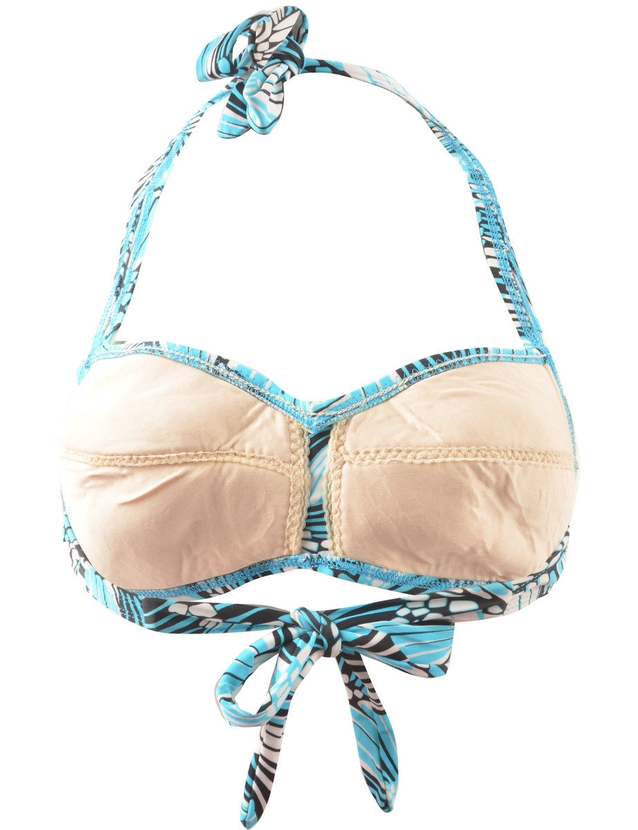 Abstract print bikini top in multi-colour with back tie and a built-in-bra.
