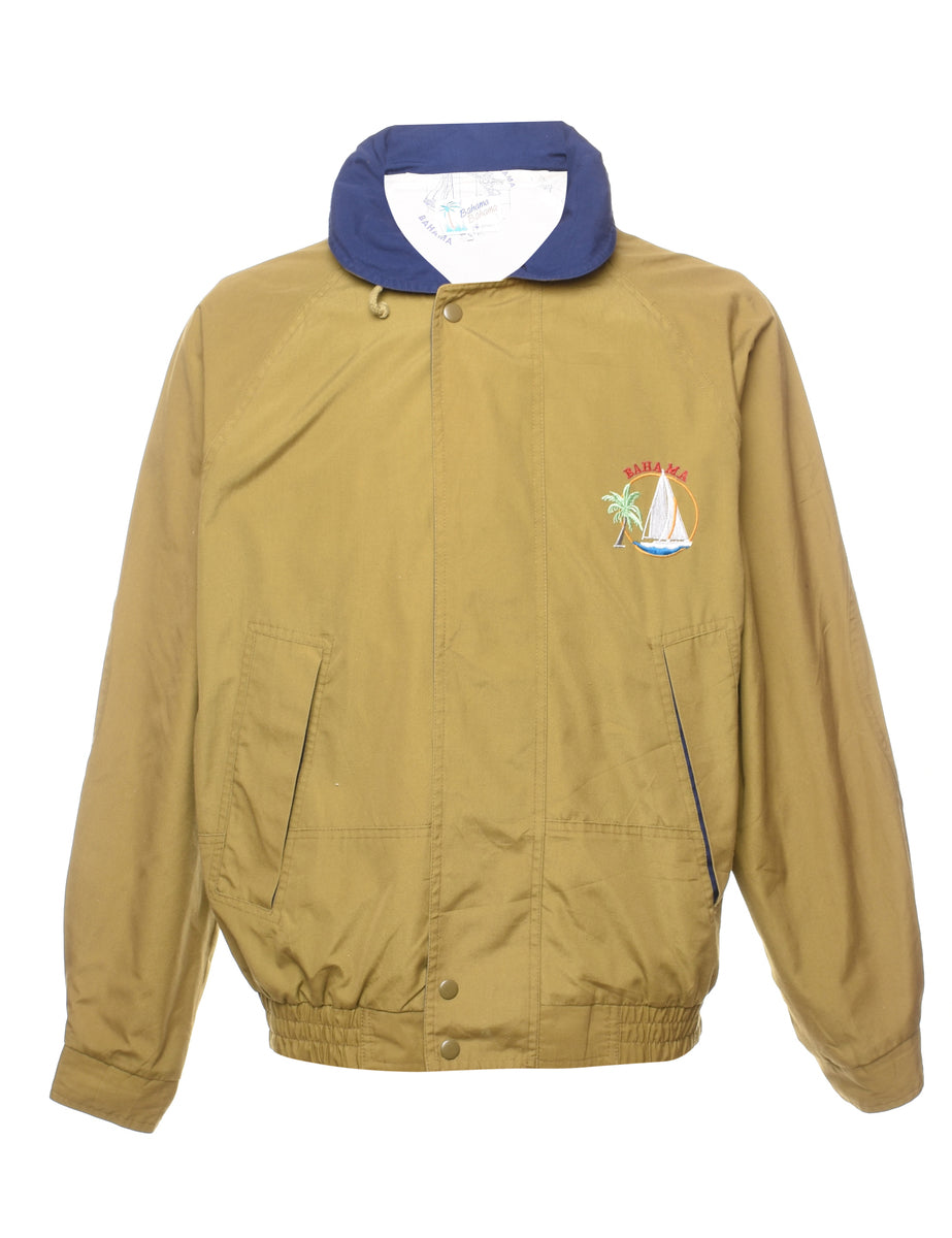 Bahama classic beige & navy contrast embroidered jacket complete with full lining and raglan sleeves.