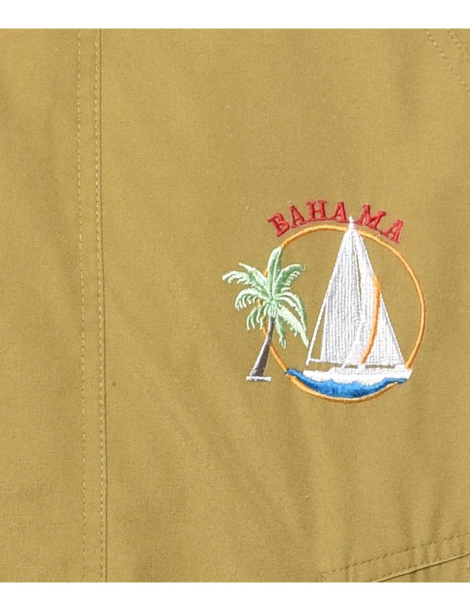 Vintage Bahama Beige & Navy Contrast Embroidered - M