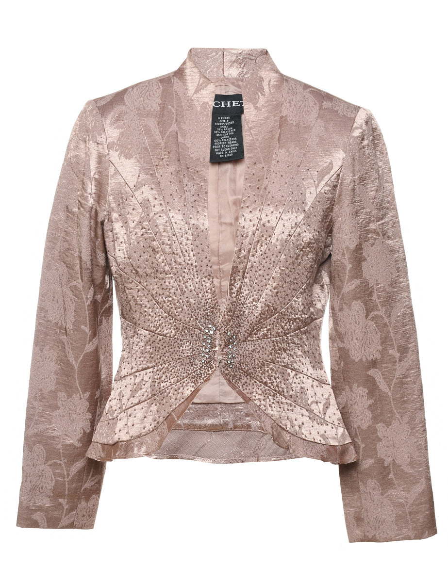 Beaded light brown sparkly metallic evening jacket complete with full lining.
