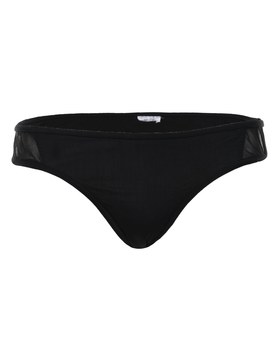 Bold black bikini bottoms complete with an elasticized waist.