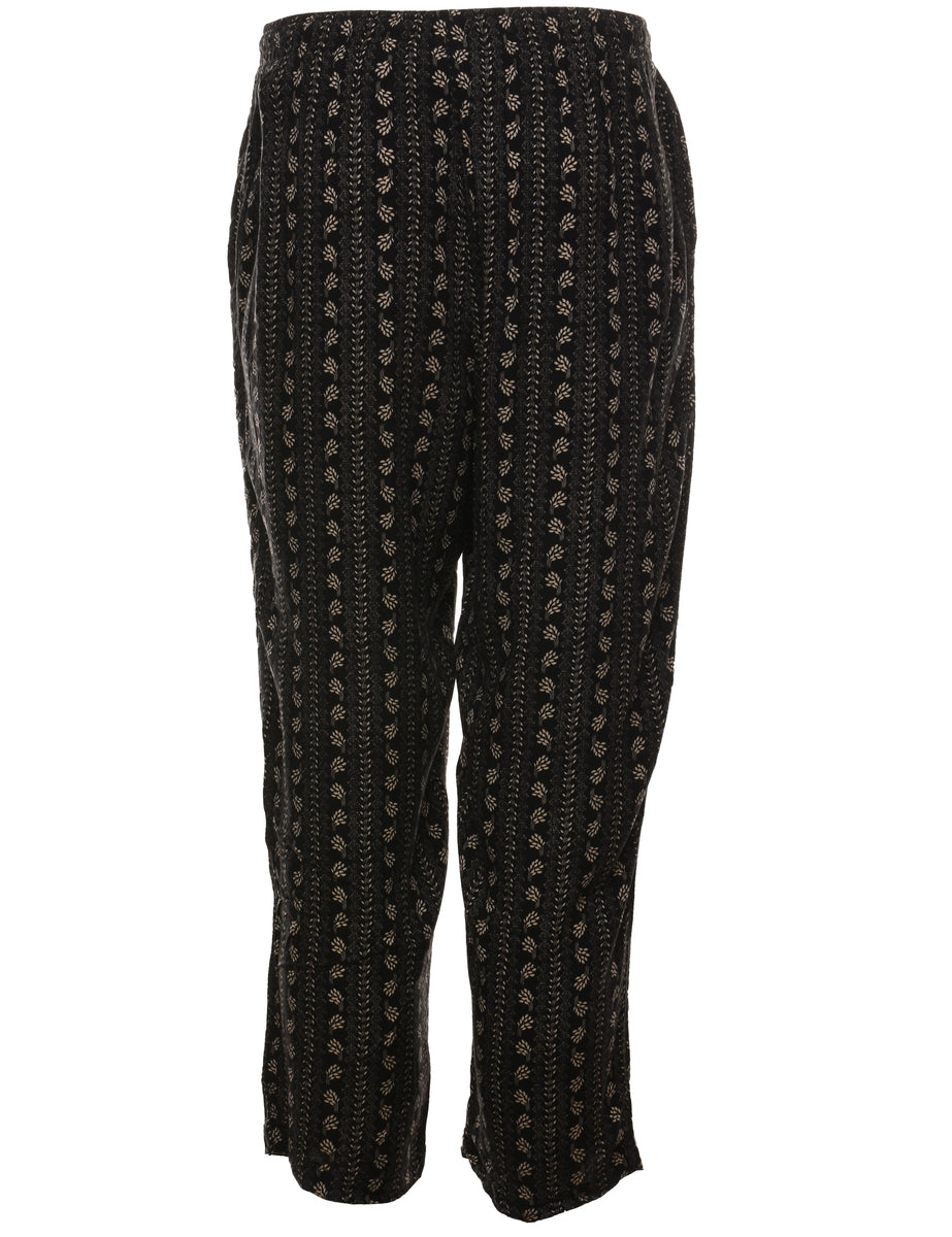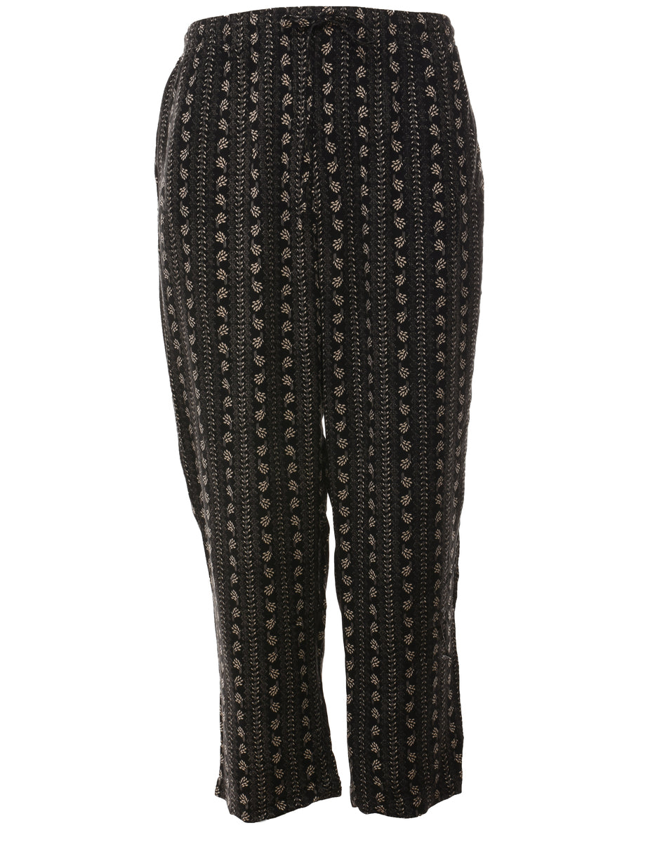 Trousers with foliage print. Comes in black with multiple pockets and a drawstring waist.