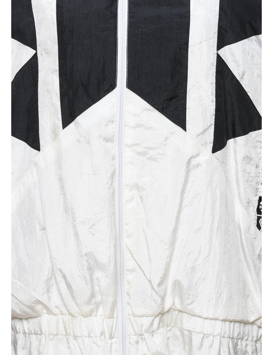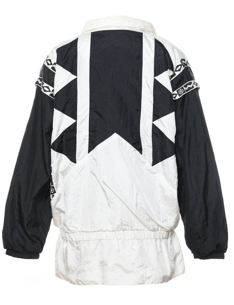 Zip-front black & white geometric nylon jacket complete with full lining and multiple pockets.
