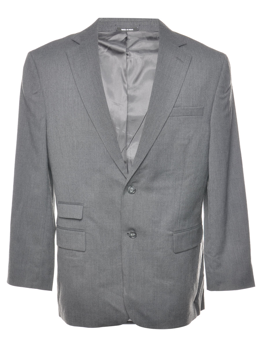 Claiborne button front blazer in dark grey with full lining and built in shoulder pads.