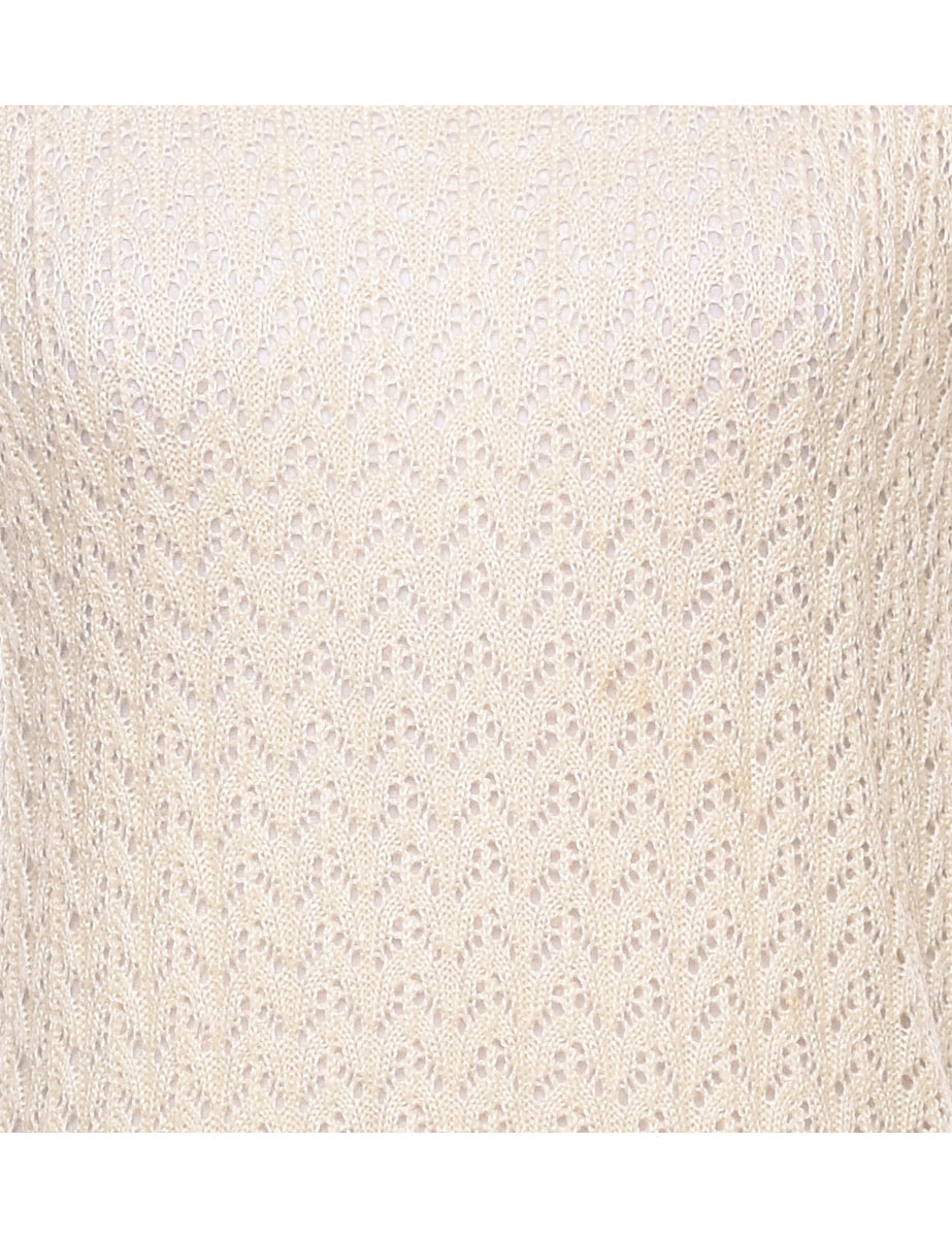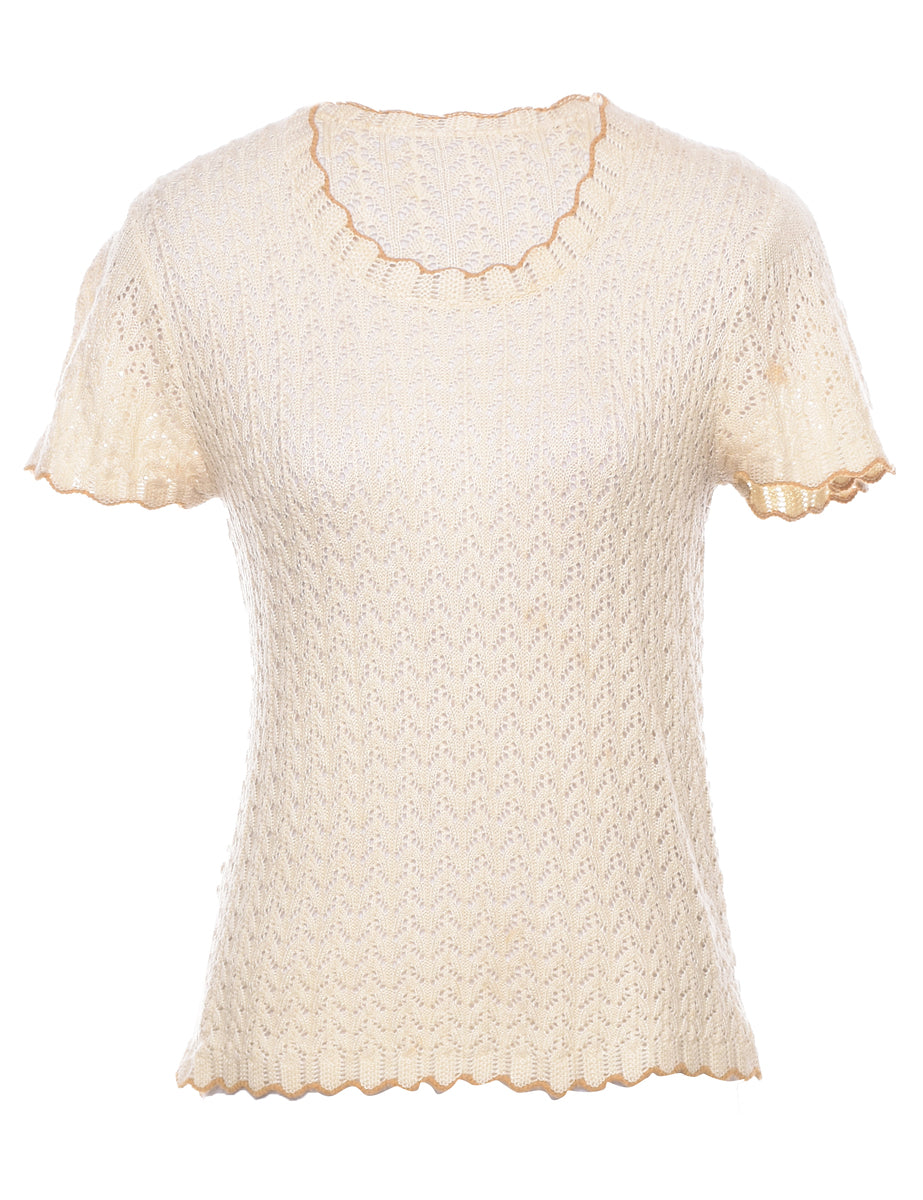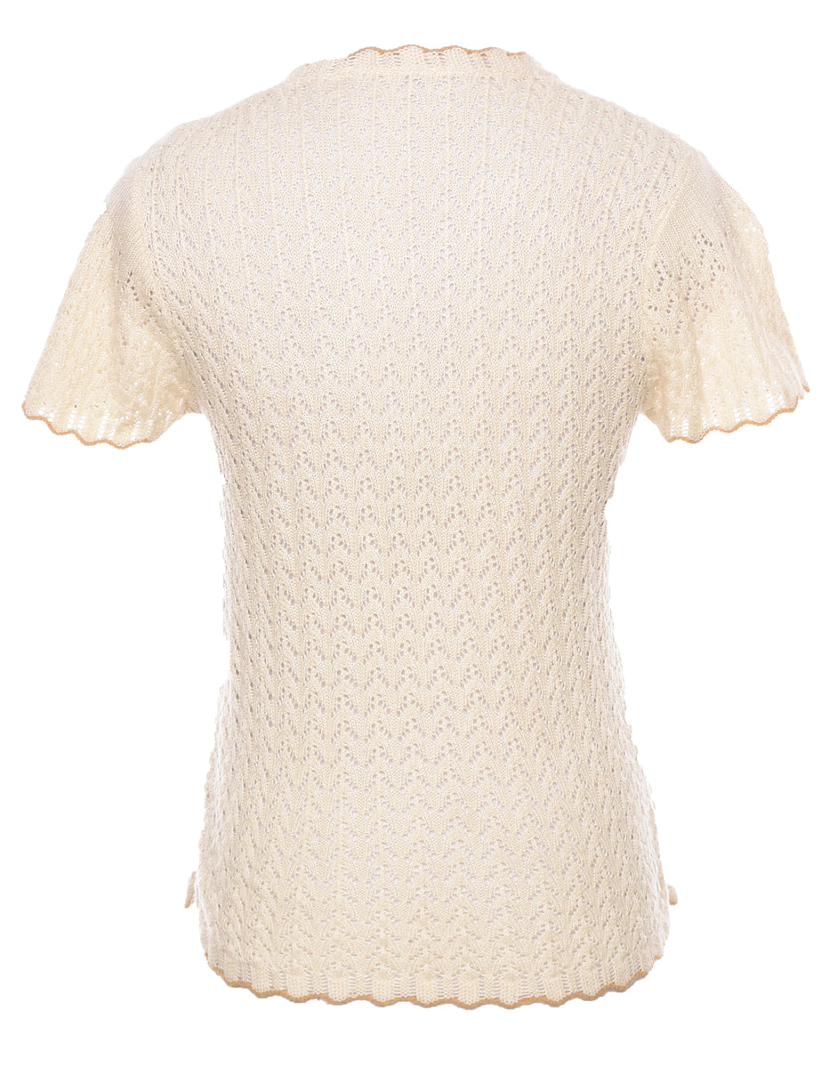 Short sleeve jumper with crochet. Comes in off white with a scalloped hem.