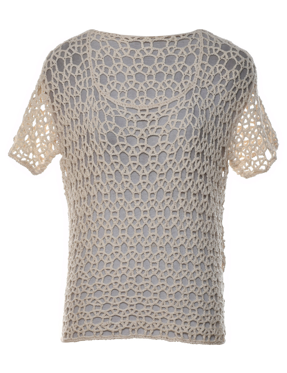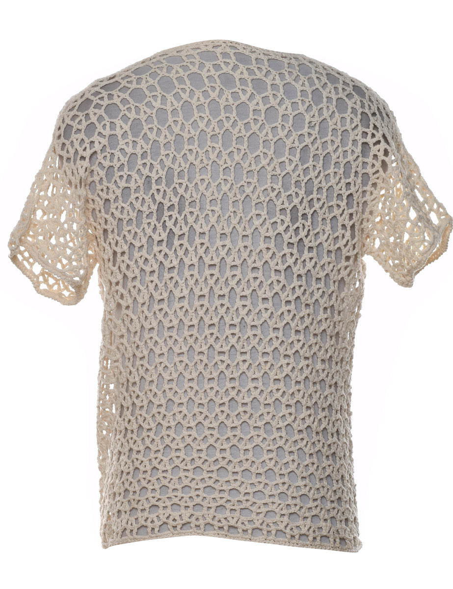 Vintage Crochet Pale Yellow Jumper - L