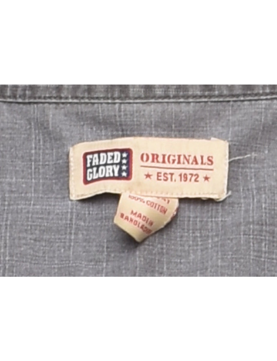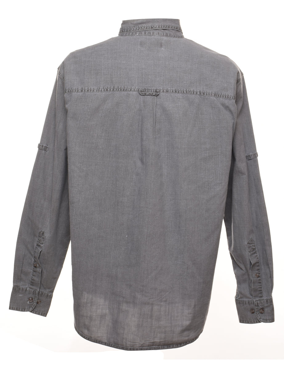 Faded Glory long sleeved denim shirt in grey with flap pockets.