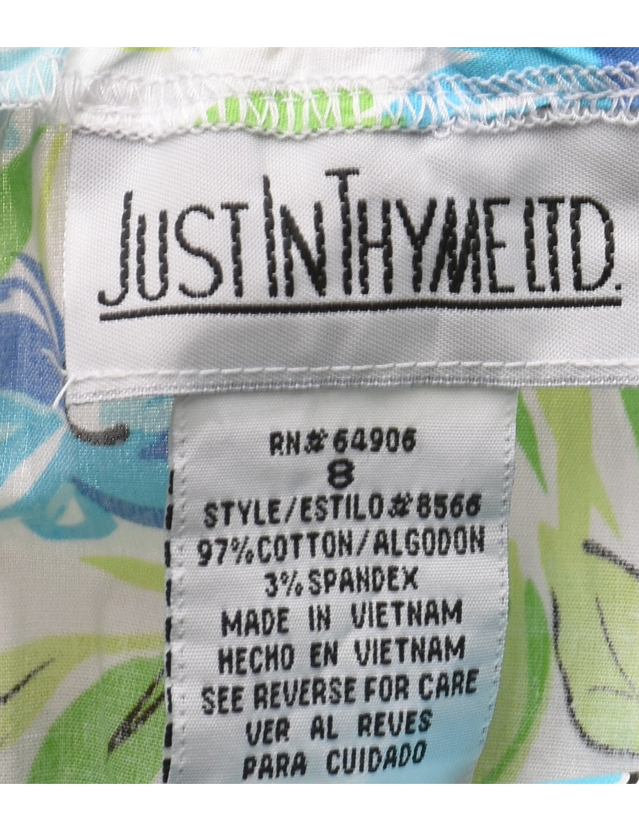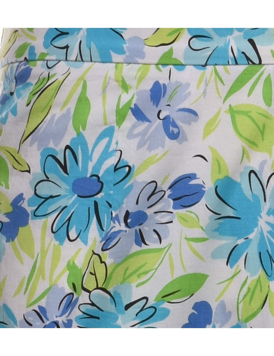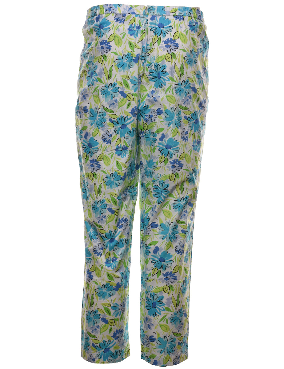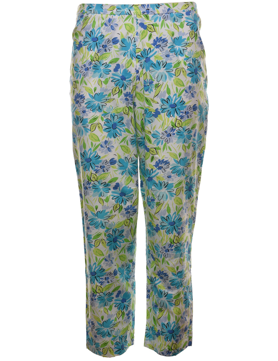 Vintage Floral Print Blue & Light Green Trousers - W28 L27