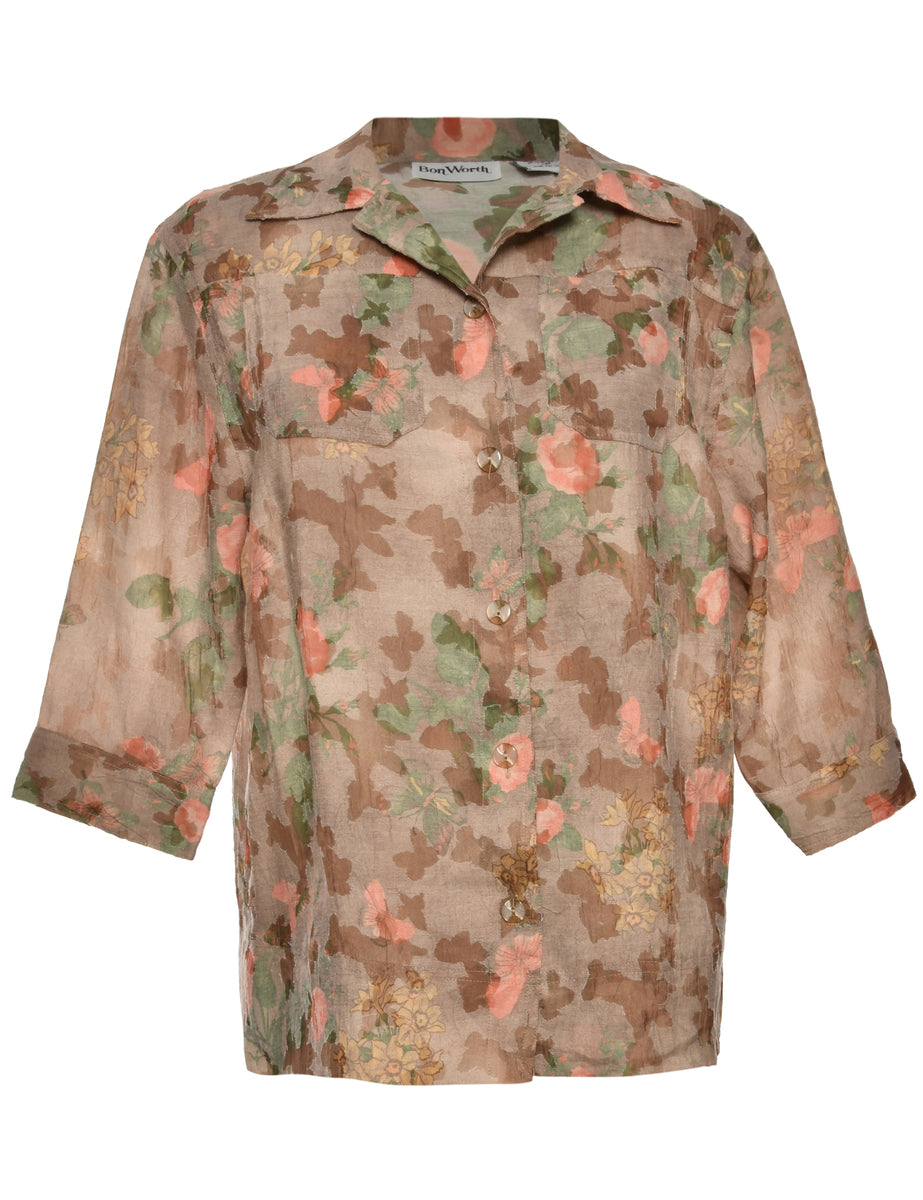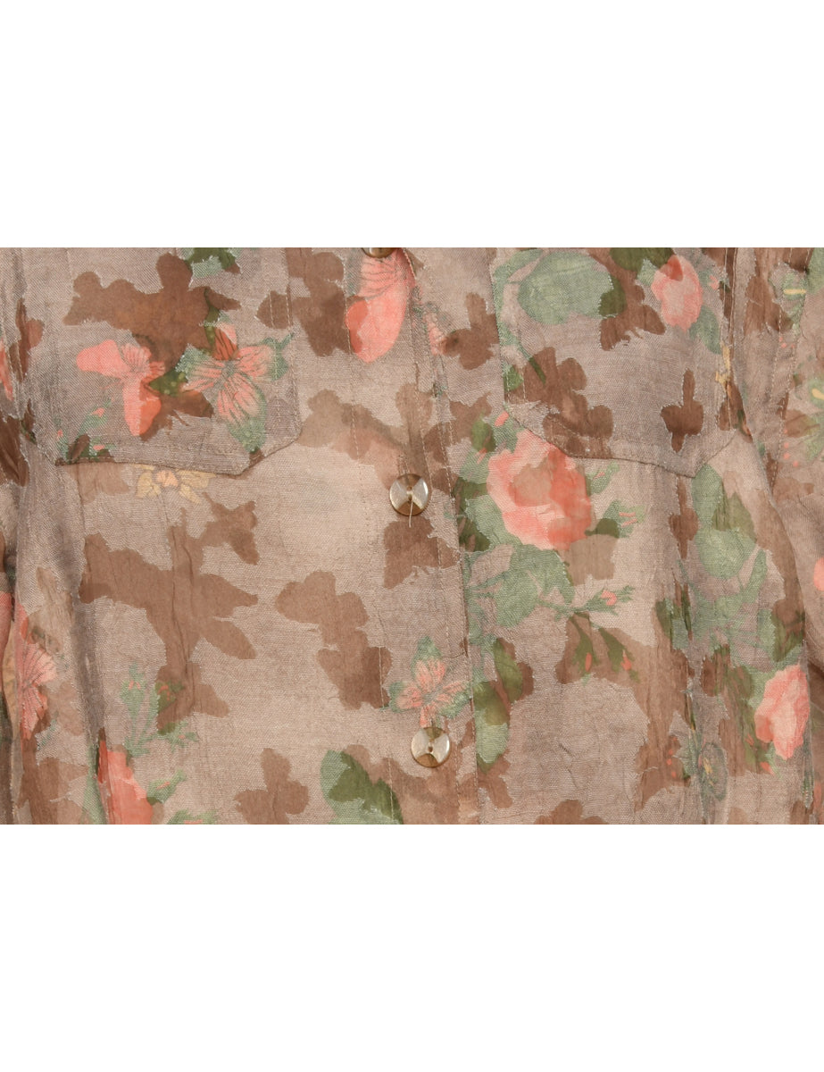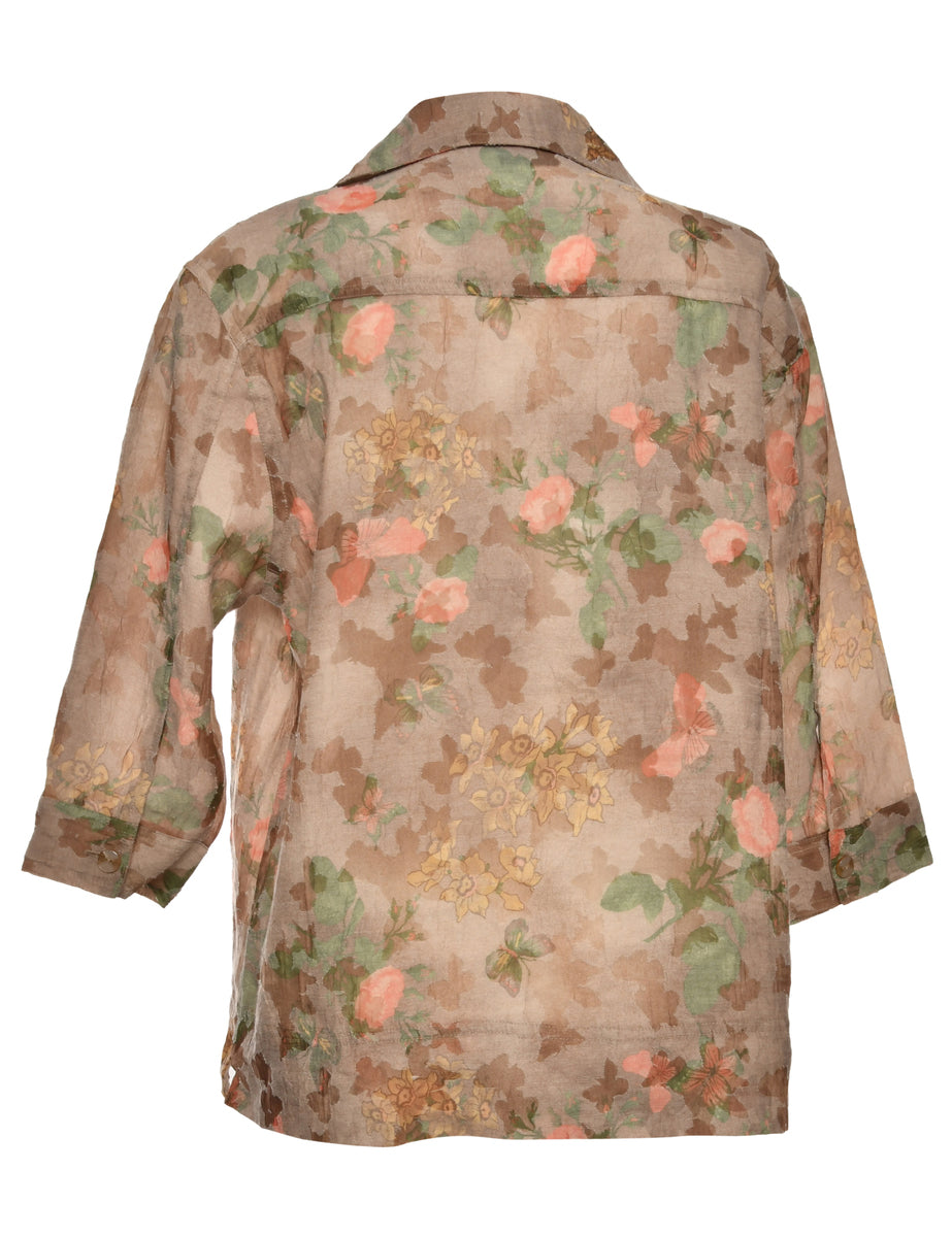 Floral printed top comes in brown with two pockets and built in shoulder pads.