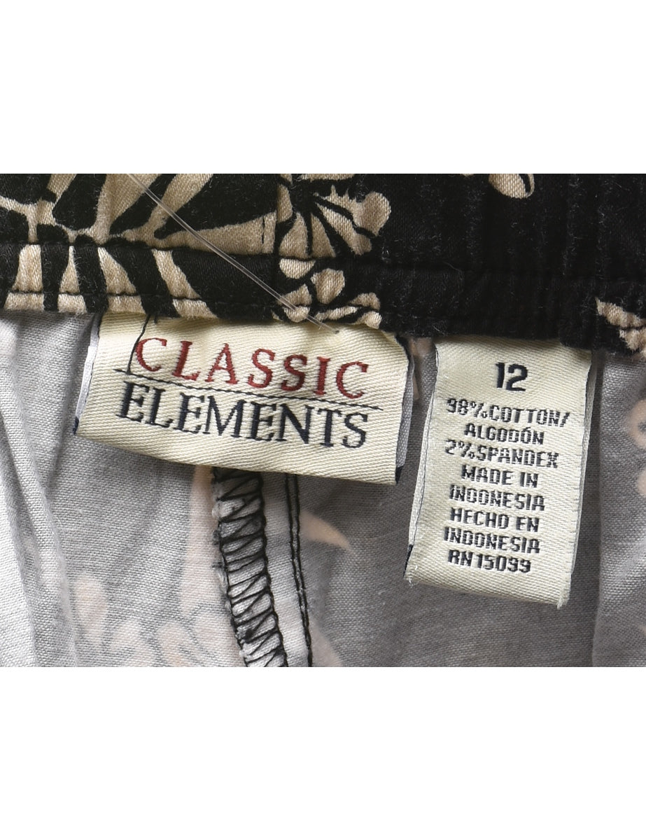 Trousers with foliage print. Comes in black with multiple pockets.