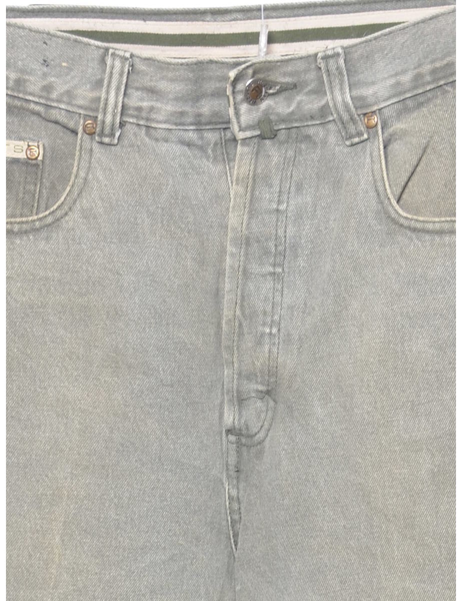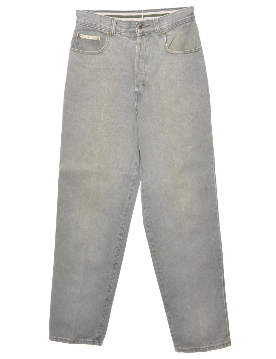Vintage High Waist Distressed Olive Green Tapered Jeans - W28 L33