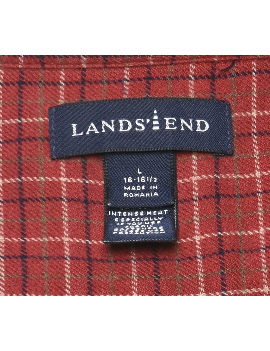Classic checked shirt in maroon with one pocket. From the brand Land's End.