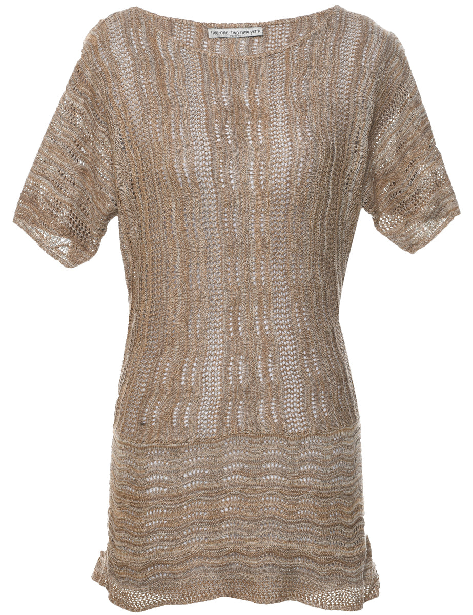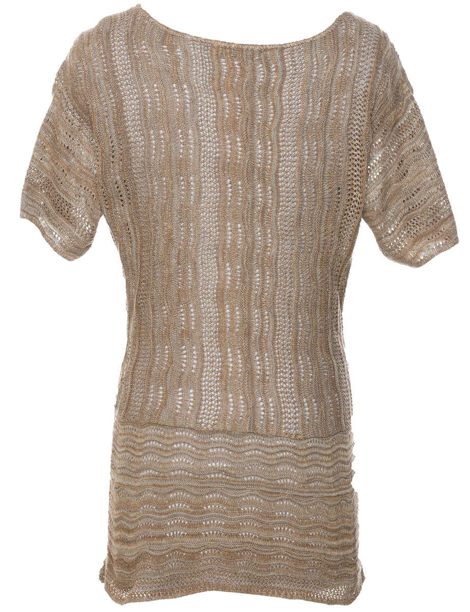 Short sleeve jumper with crochet. Comes in light brown with a round neck.