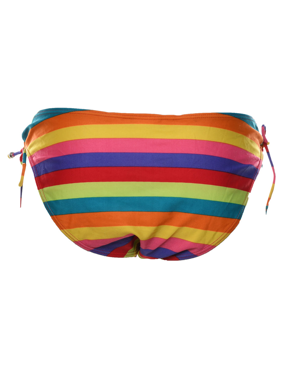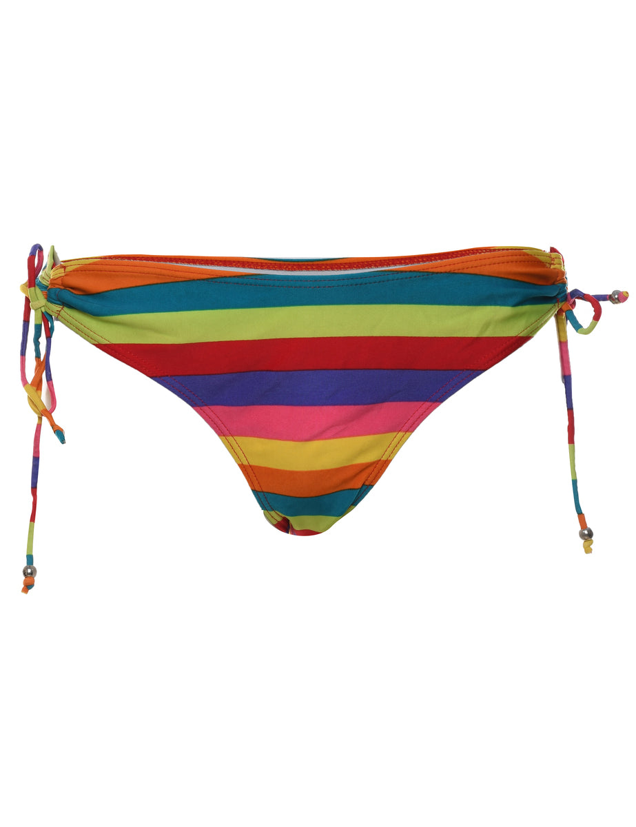 Striped multi-colour bikini bottoms complete with side ties.