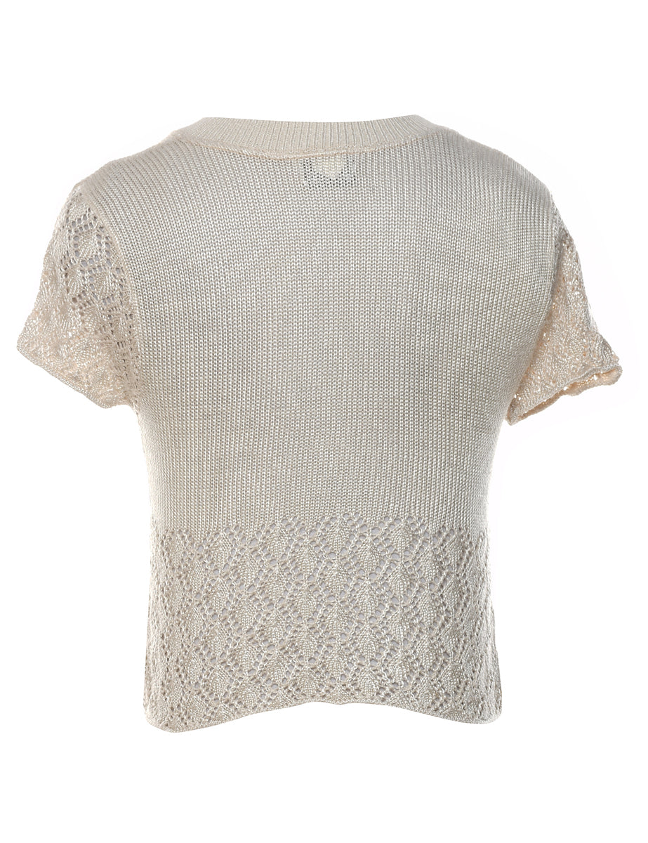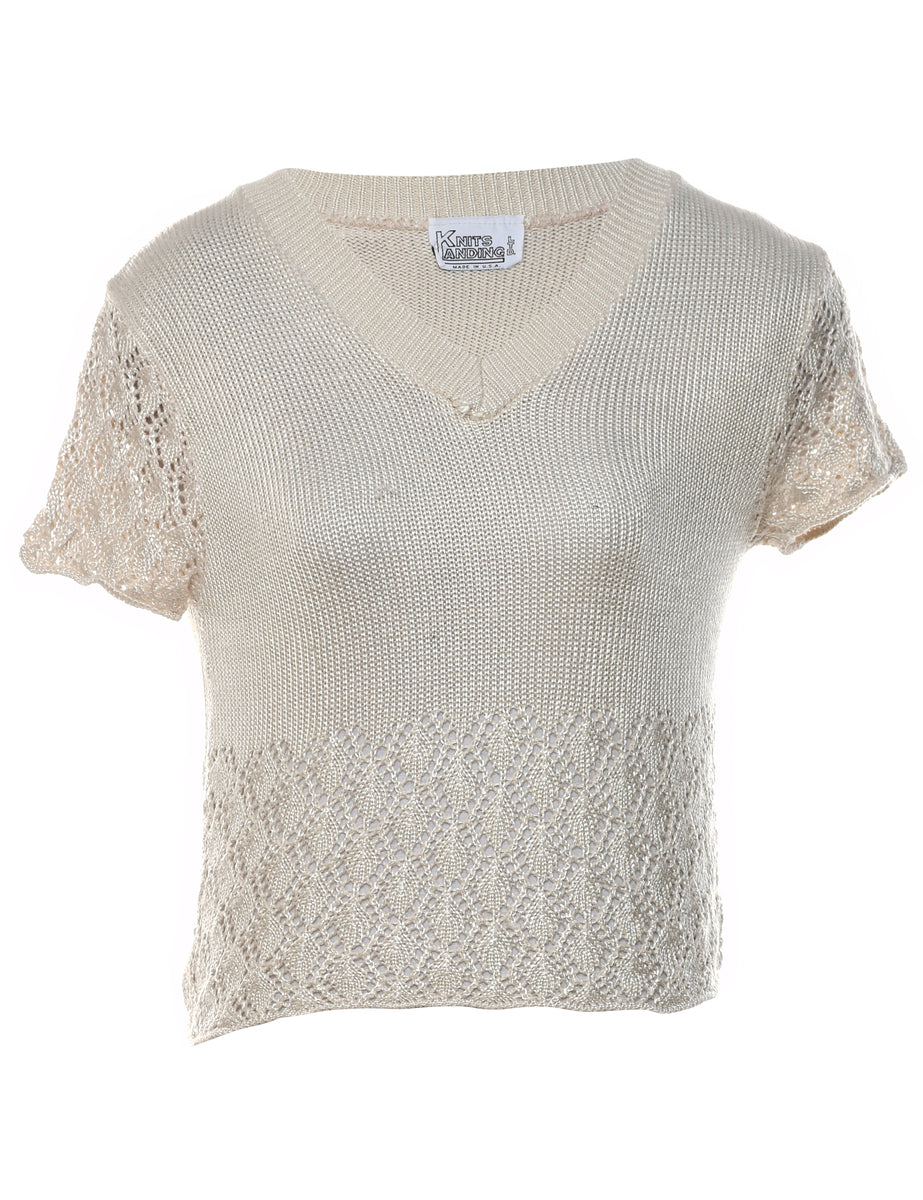 Short sleeve jumper. Comes in pale yellow with a v-neck.