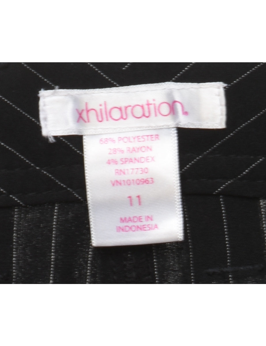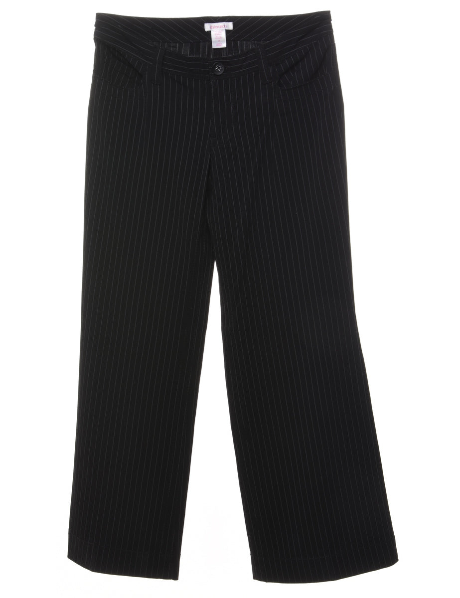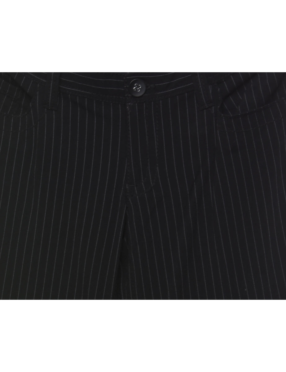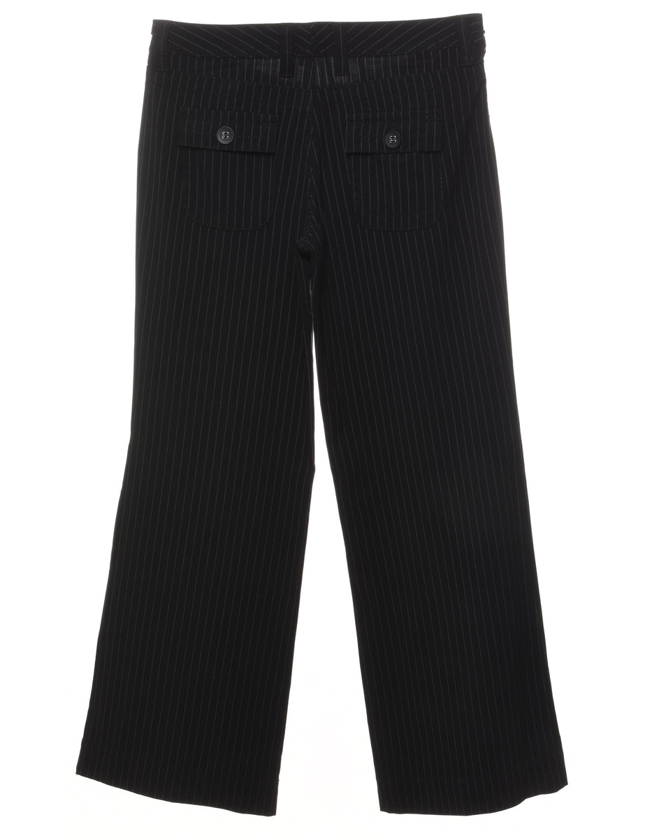 Flared leg trousers with pinstripes. Comes in black with multiple pockets.