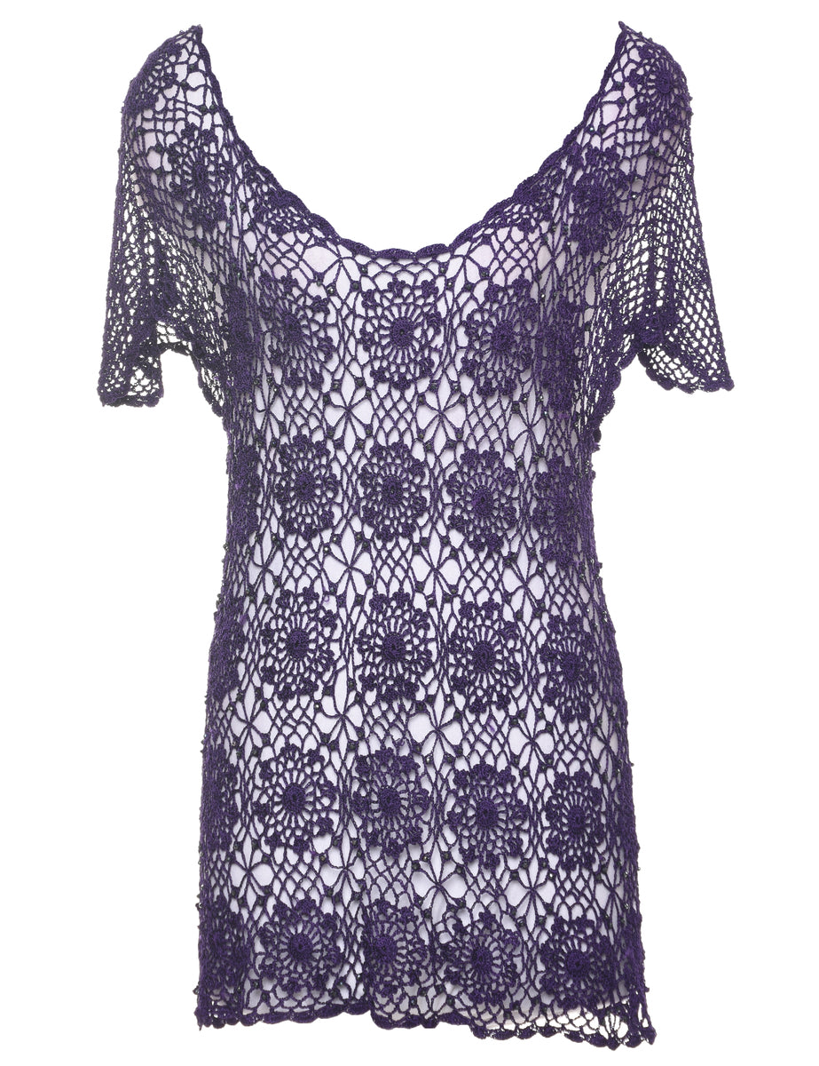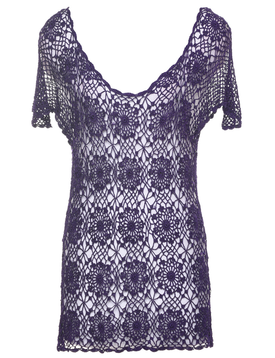 Vintage Purple Crochet Jumper - M