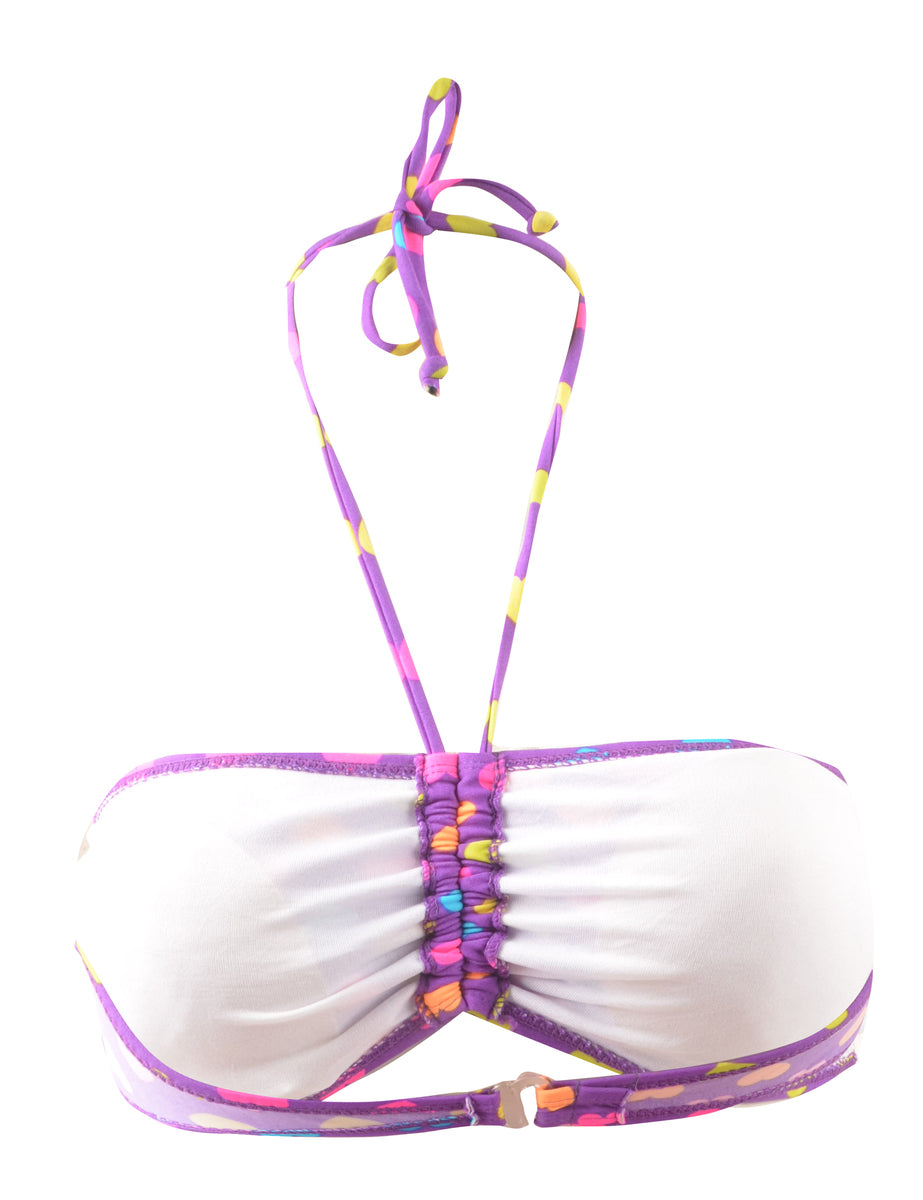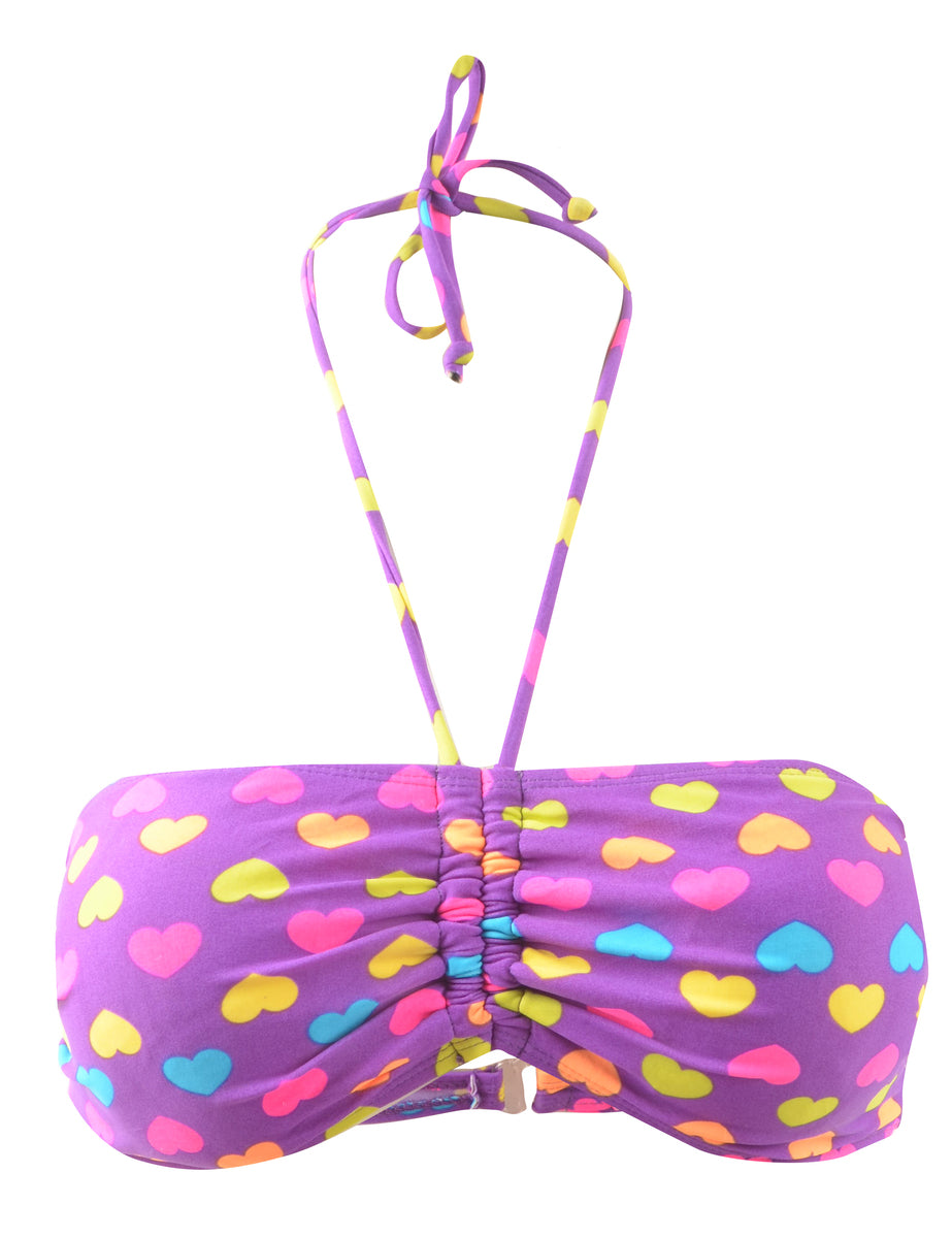 Ruched purple heart design bikini top with a halterneck and a built-in-bra.