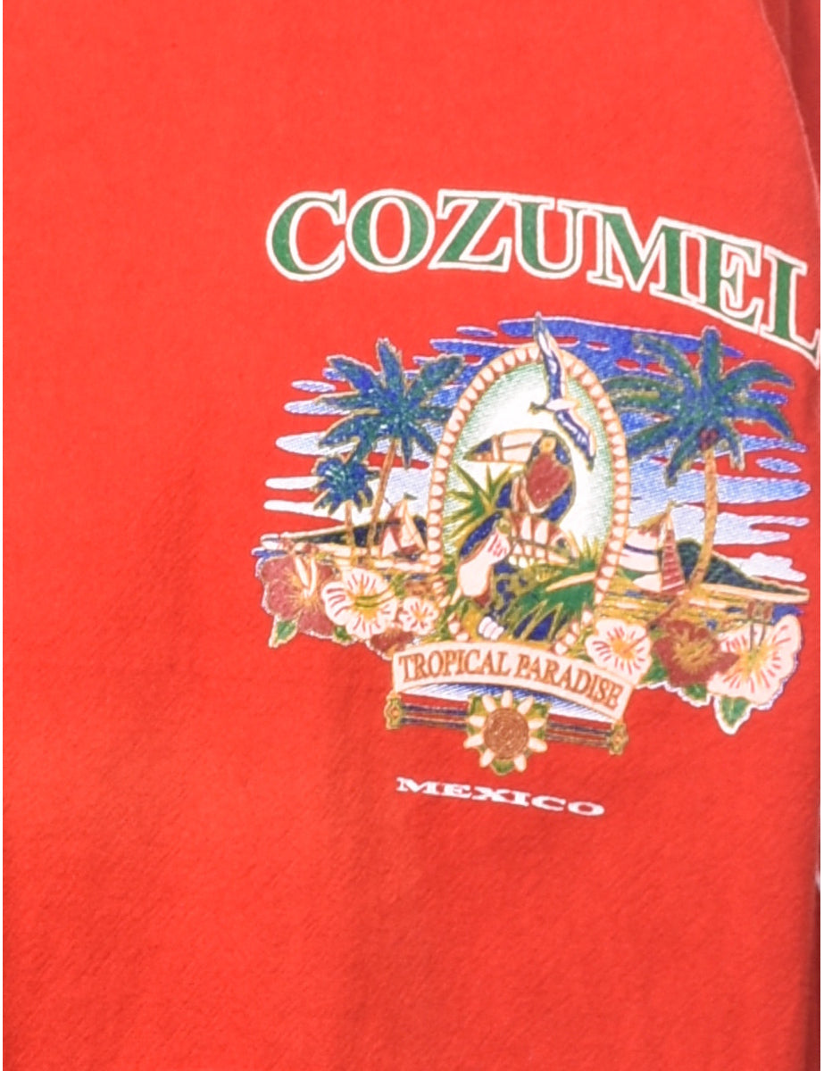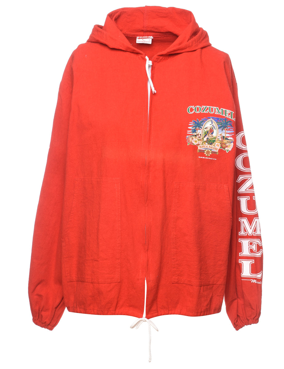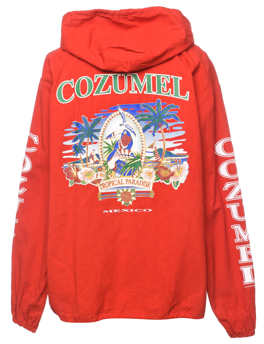 Vintage Red Cozumel Printed Red Hooded Sweatshirt - S